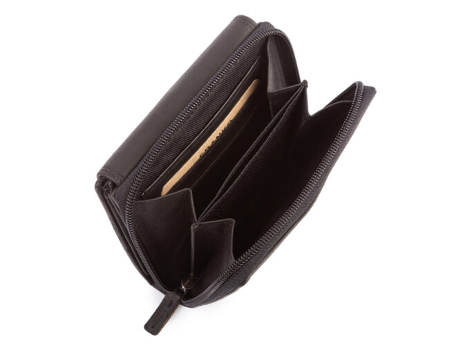 - Kieszonka zapinana na suwak wewnątrz portfela.