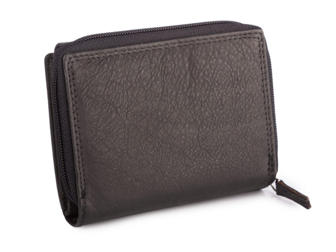 Czarny portfel damski skórzany zapinany dookoła na zamek