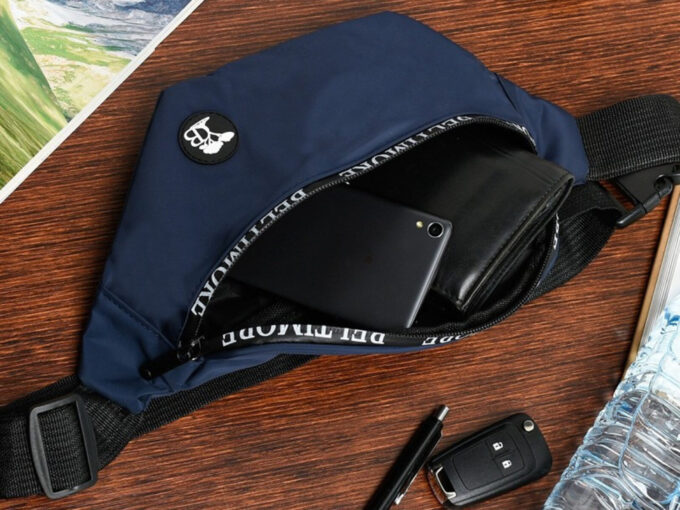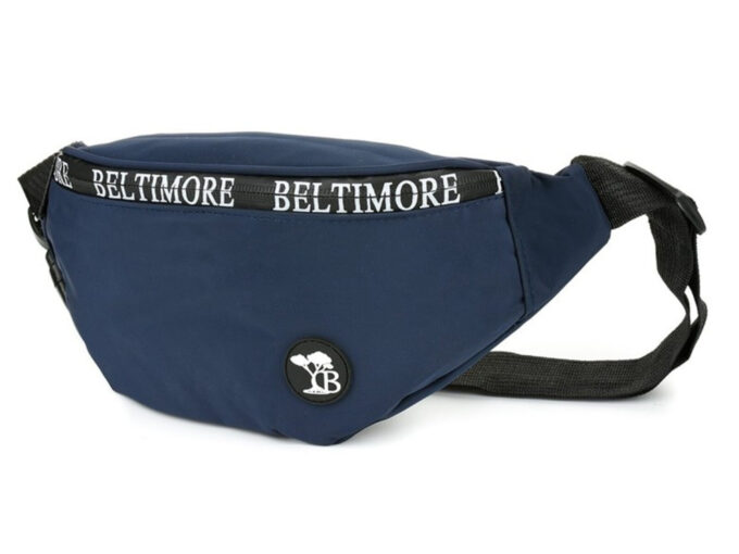 Granatowa saszetka biodrowa Beltimore z mocnego, wodoodpornego materiału, z główną komorą i tylną kieszenią na zamek zabezpieczonym przed zachlapaniem oraz regulowanym paskiem do 130 cm — można ją też nosić crossbody, idealna na bezpieczne przechowywanie najpotrzebniejszych rzeczy. Pełna specyfikacja ⬇