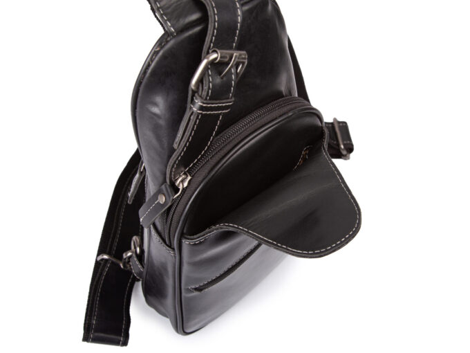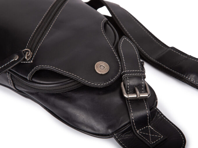 - Skórzany plecak damski na jedno ramię w kolorze czarnym.