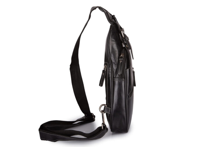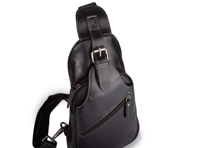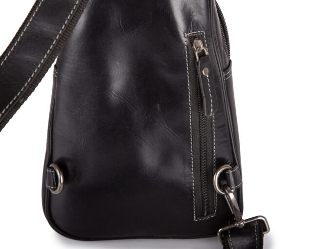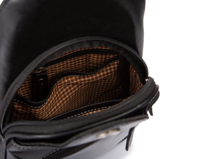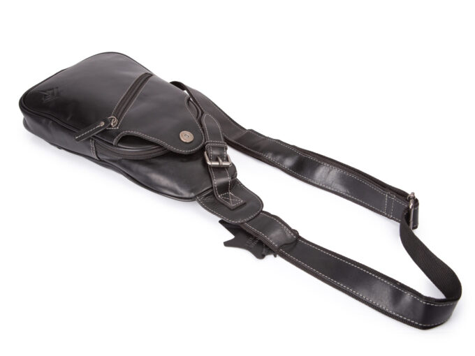 - Plecak posiada długi i regulowany pasek na ramię wykonany ze skóry i podszyty wartswą mocnego materiału.