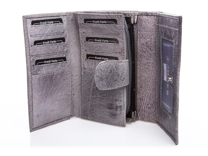 J Jones Portfel skórzany w stylu vintage skórzany bardzo pojemny szary