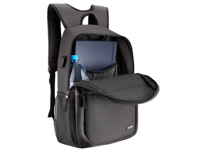 - Czarno-szary plecak z portem USB.