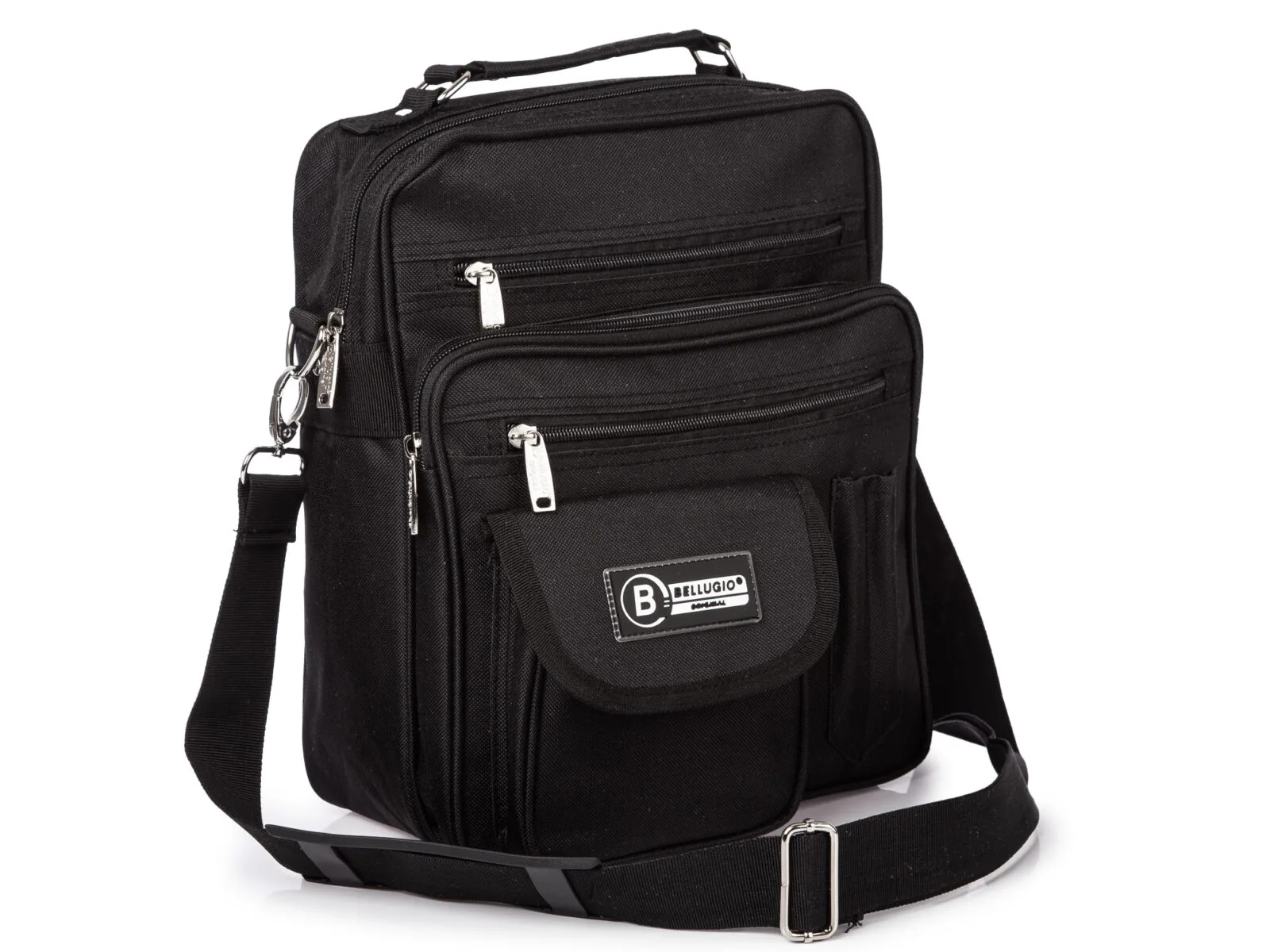 Pionowa materiałowa torba męska na ramię robocza czarna Bellugio