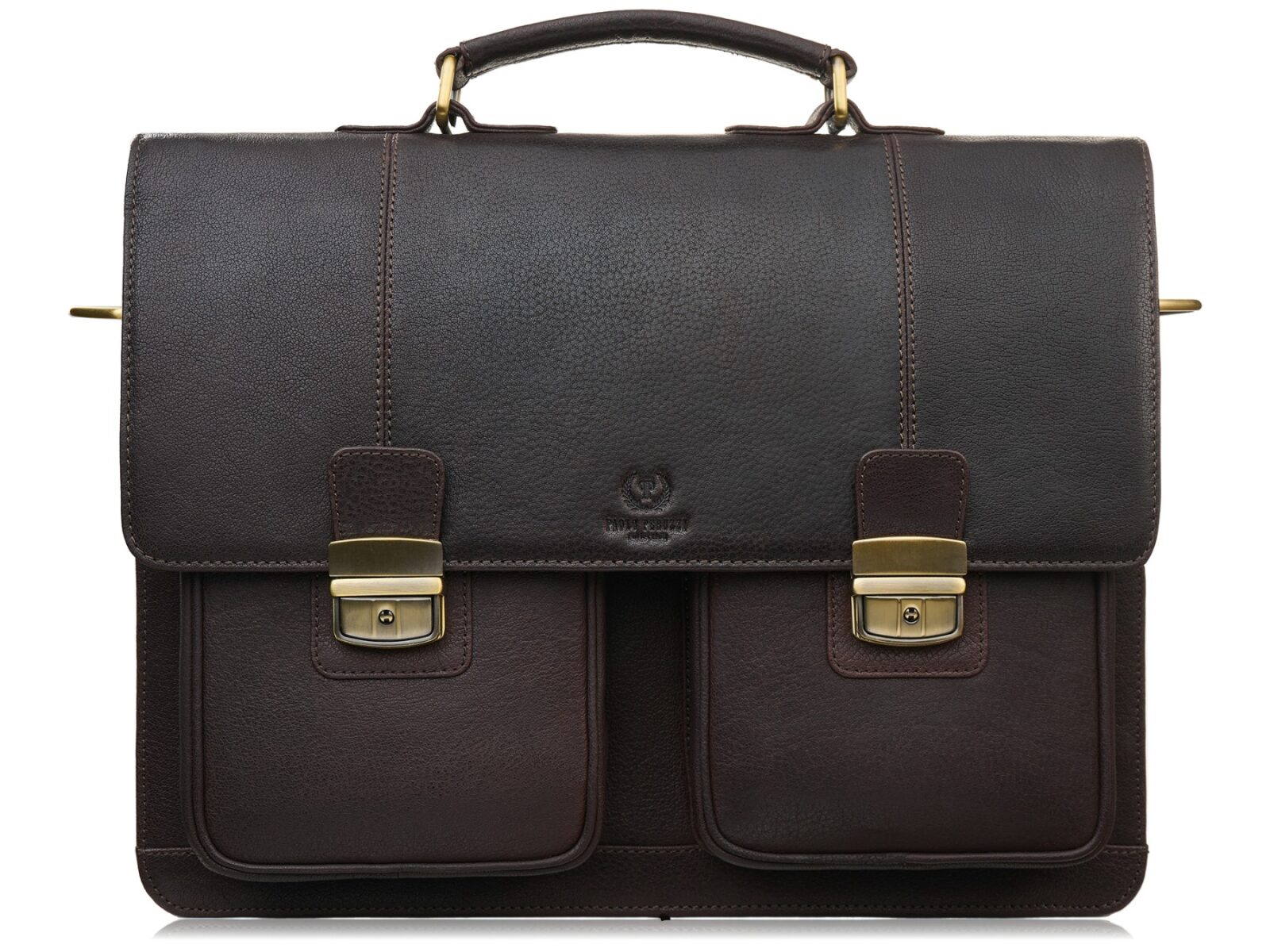 Duża, skórzana teczka męska na dokumenty w kolorze ciemnobrązowym Paolo Peruzzi