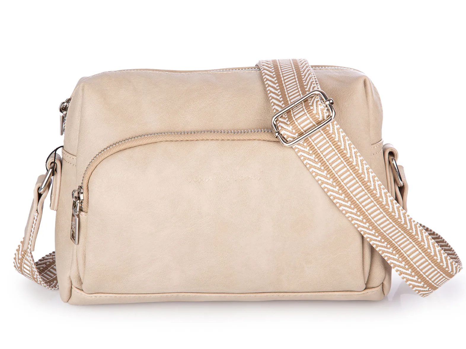 Beżowa średnia torebka damska z miękkiej skóry ekologicznej Jennifer Jones