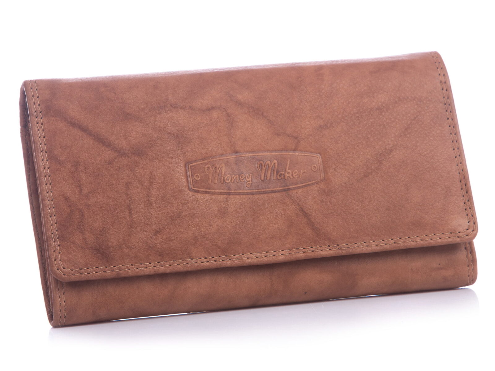 Etui na dokumenty skórzane w kolorze jasnobrązowym marki Money Maker