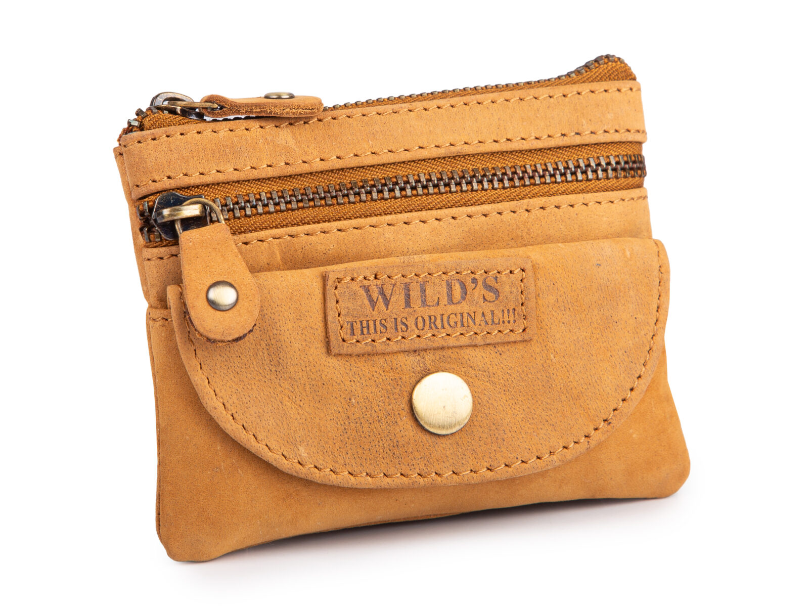 Pionowy portfel męski skórzany jasnobrązowy zapinany na zatrzask WILD