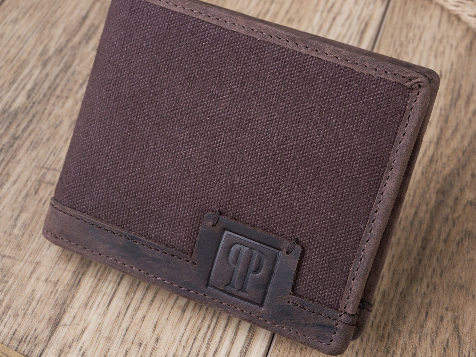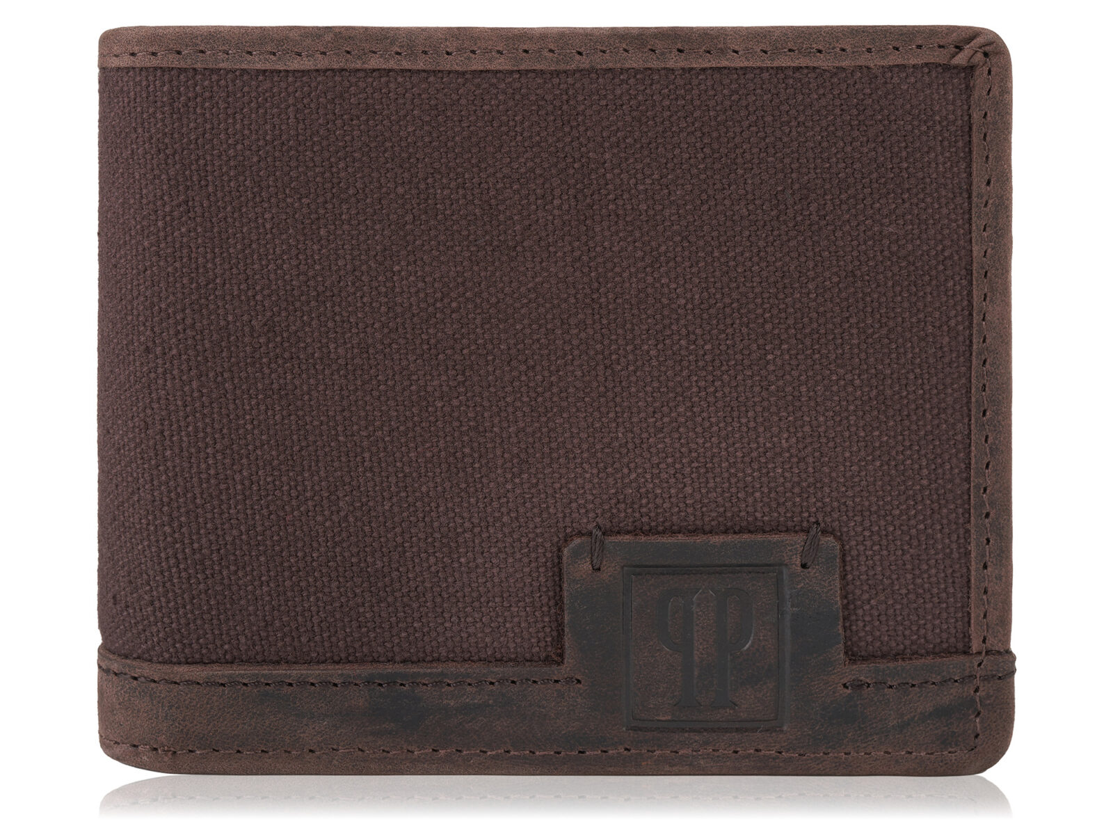Wygodny, brązowy portfel męski Paolo Peruzzi z mocnego materiału i skóry naturalnej