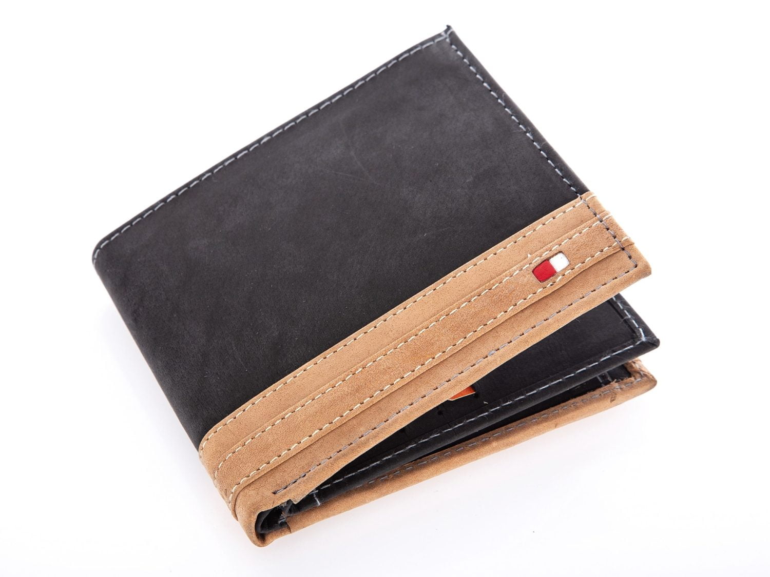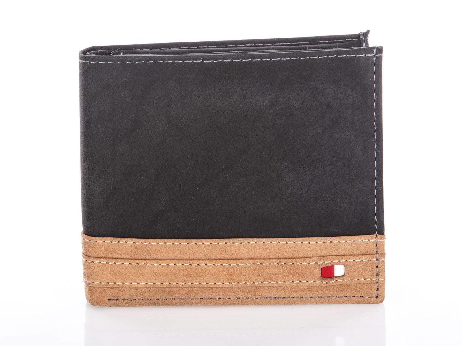 Portfel męski skórzany RFID poziomy czarno-beżowy