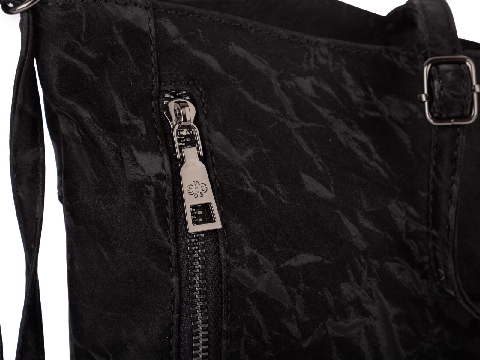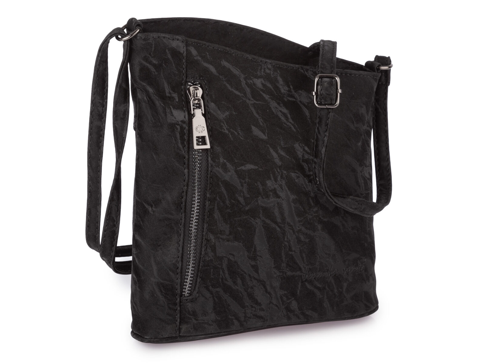 Małą czarna torebka damska na ramię z gniecionej aksamitnej skóry ekologicznej