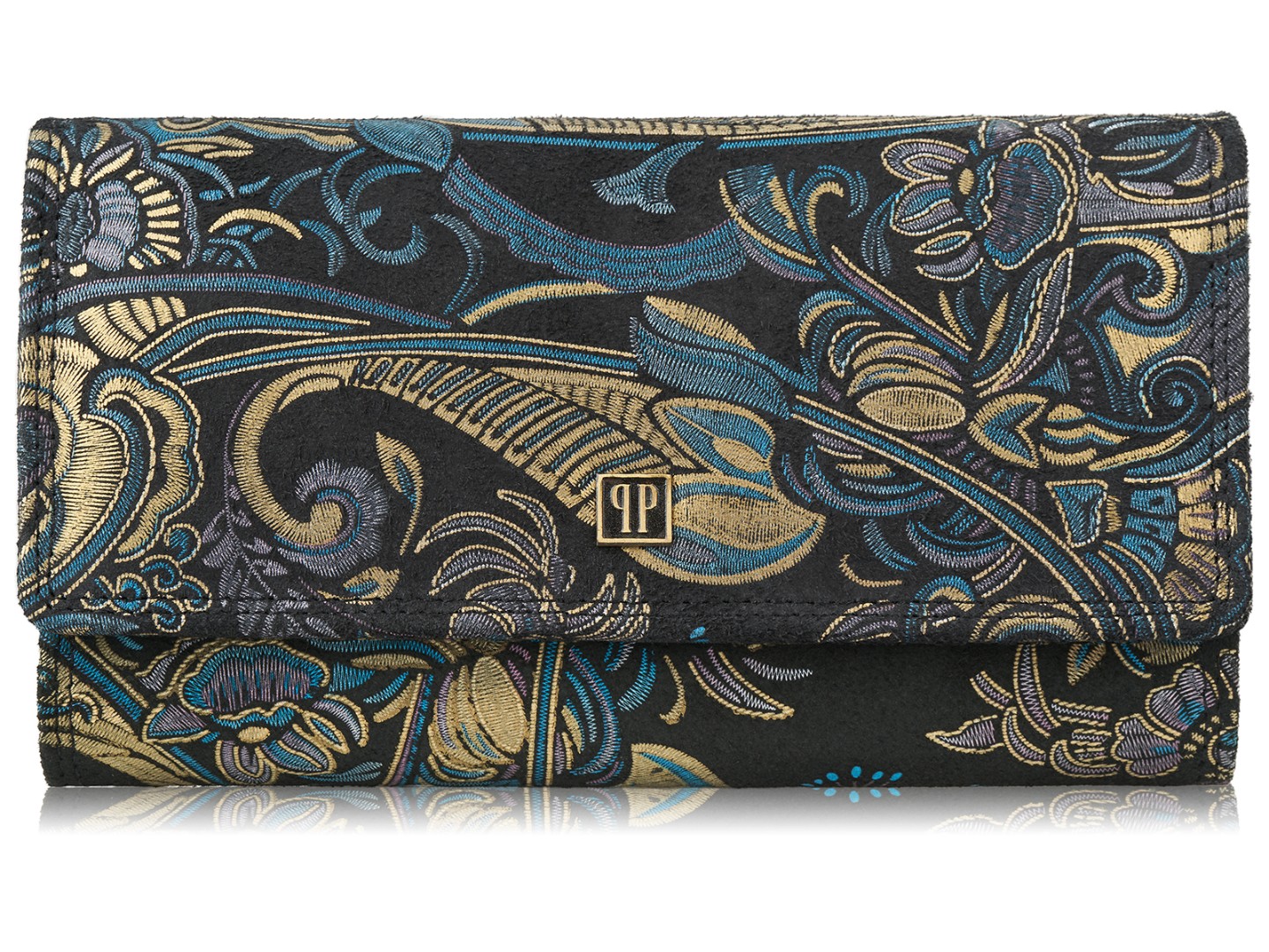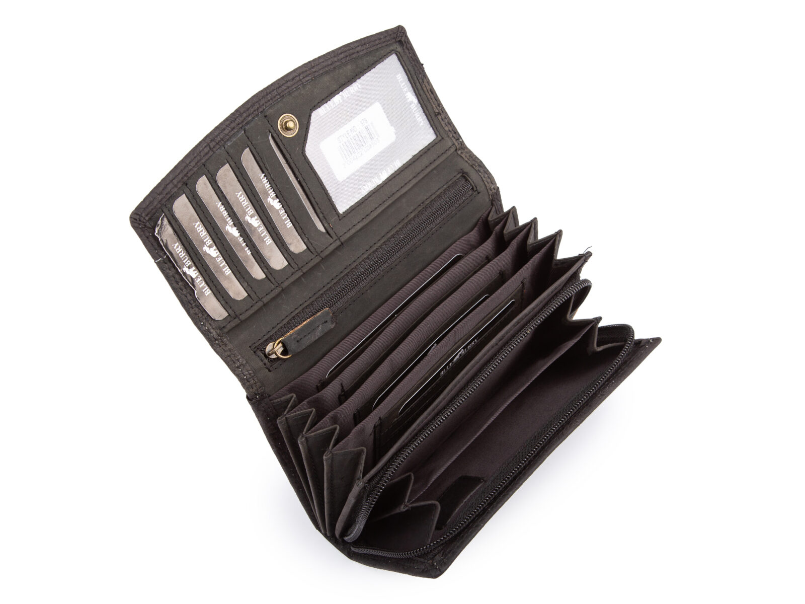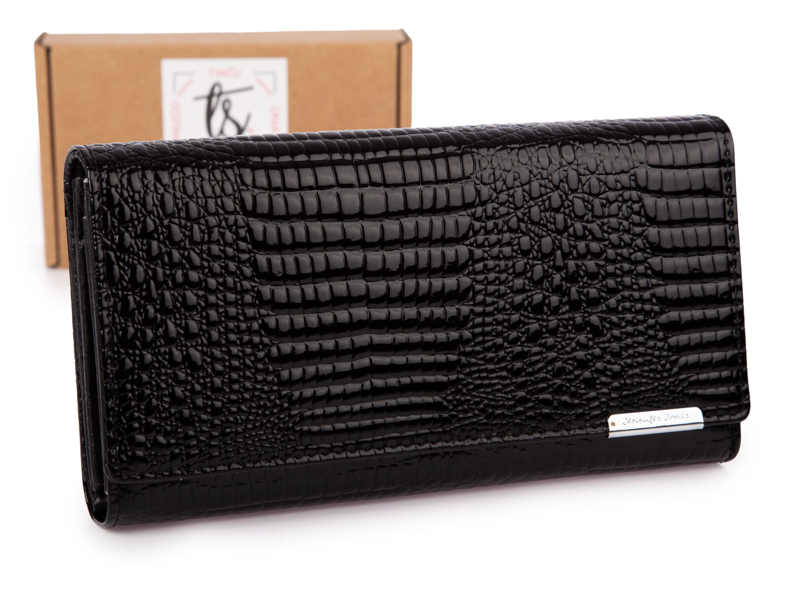 Elegancki duży portfel damski Jennifer Jones z lakierowanej skóry naturalnej RFID czarny