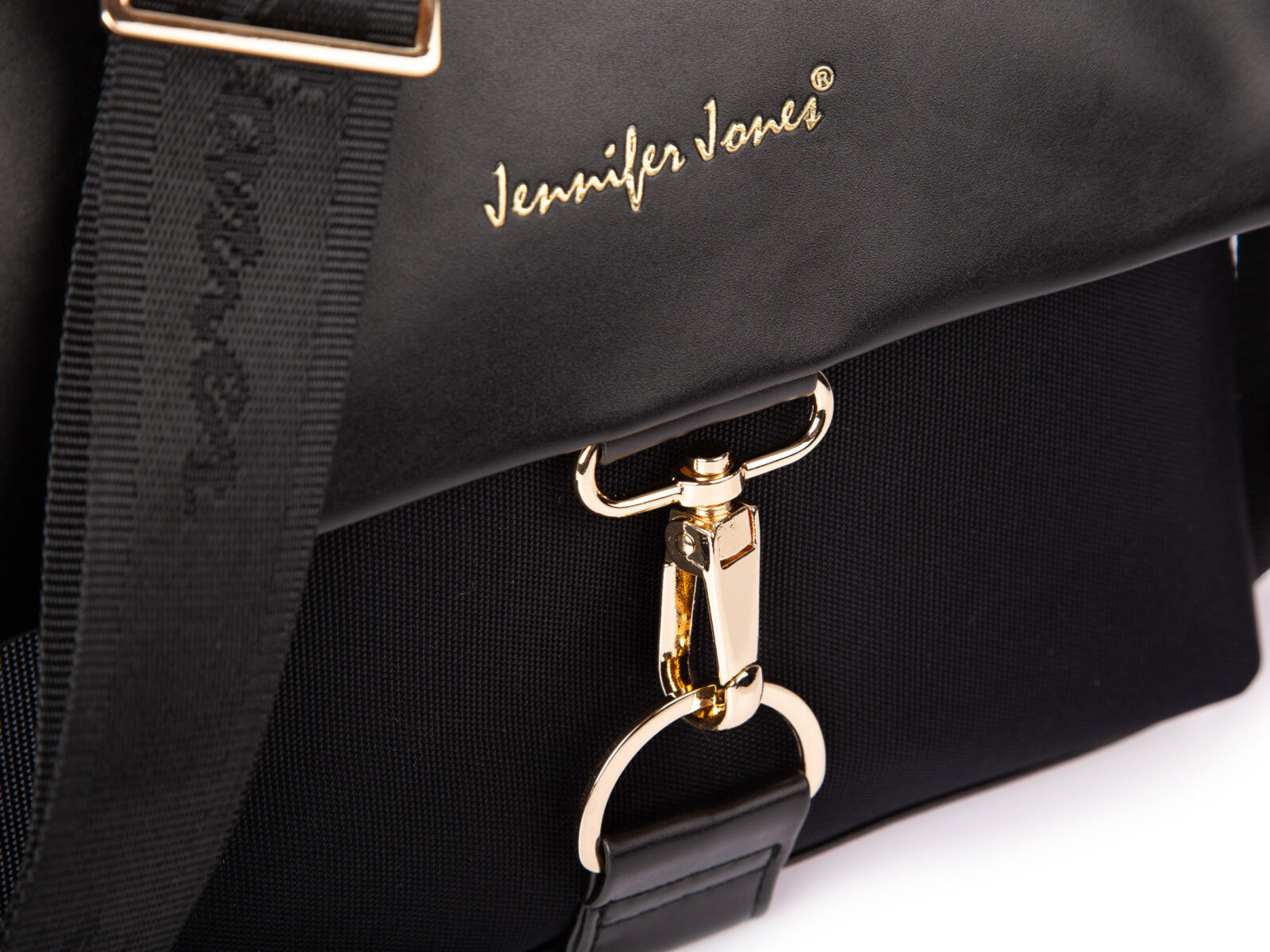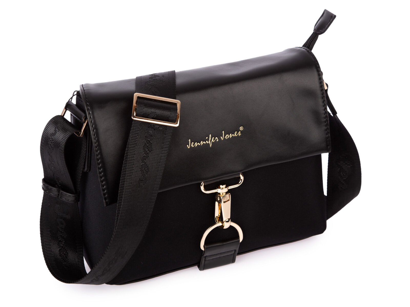Elegancka czarna torebka damska Jennifer Jones z klapką na karabińczyk