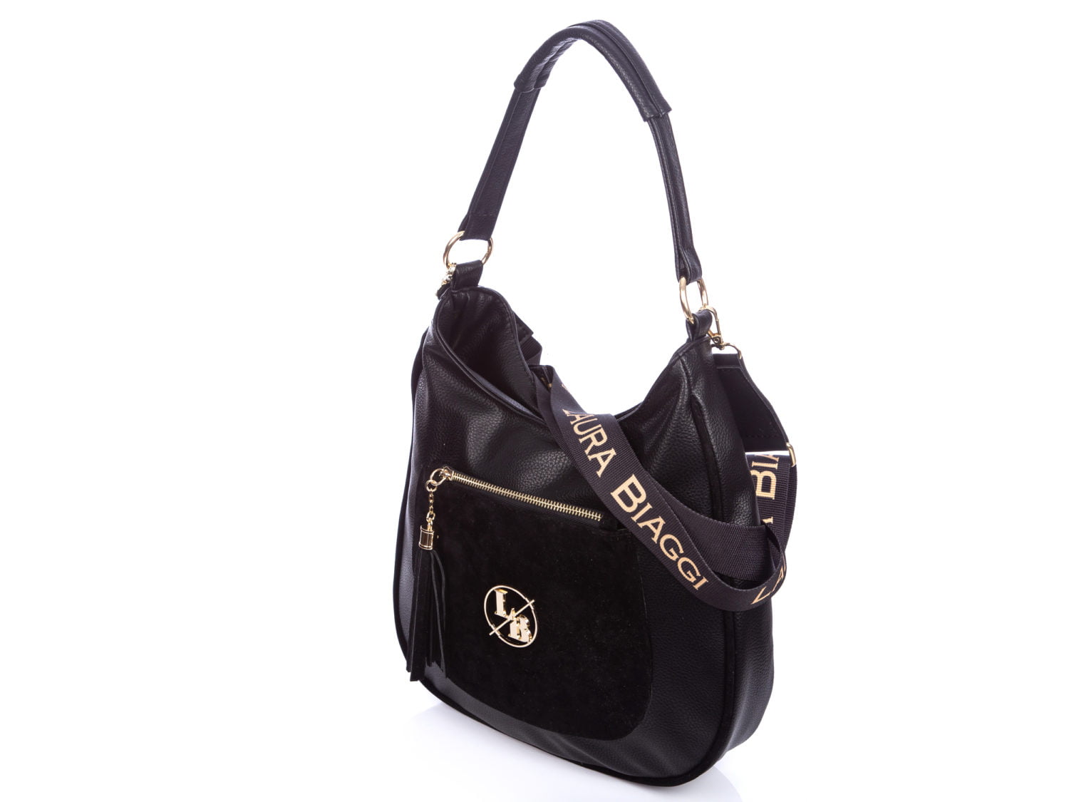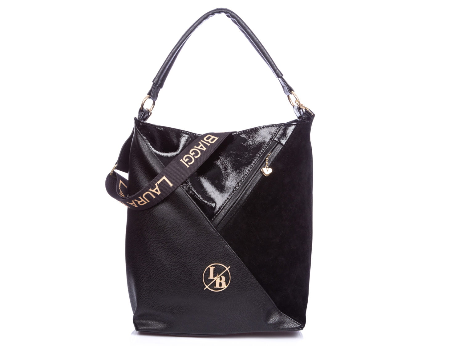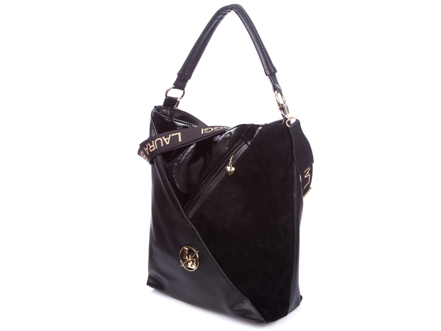 Czarna torba damska Laura Biaggi matowo-lakierowana