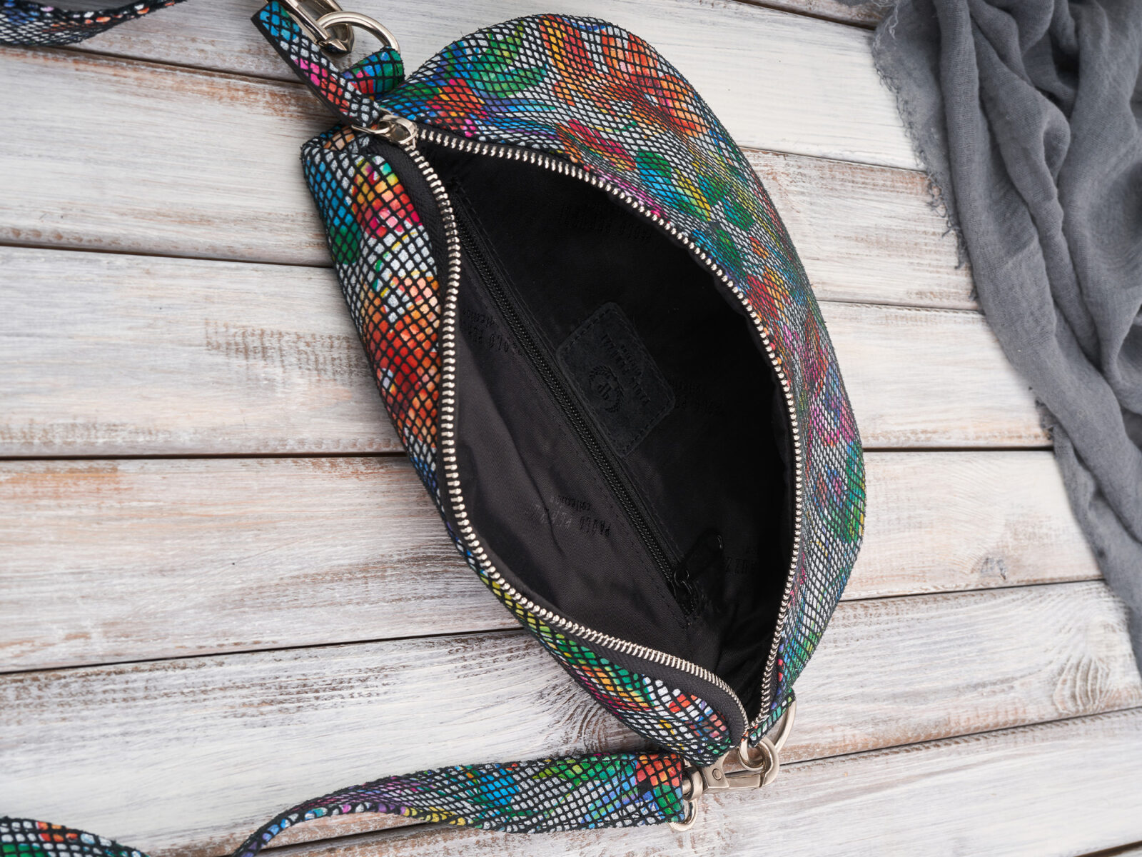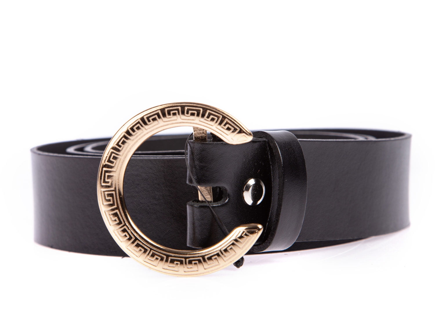 Pasek damski skórzany ze złotą klamrą na bolec z wzorkami
