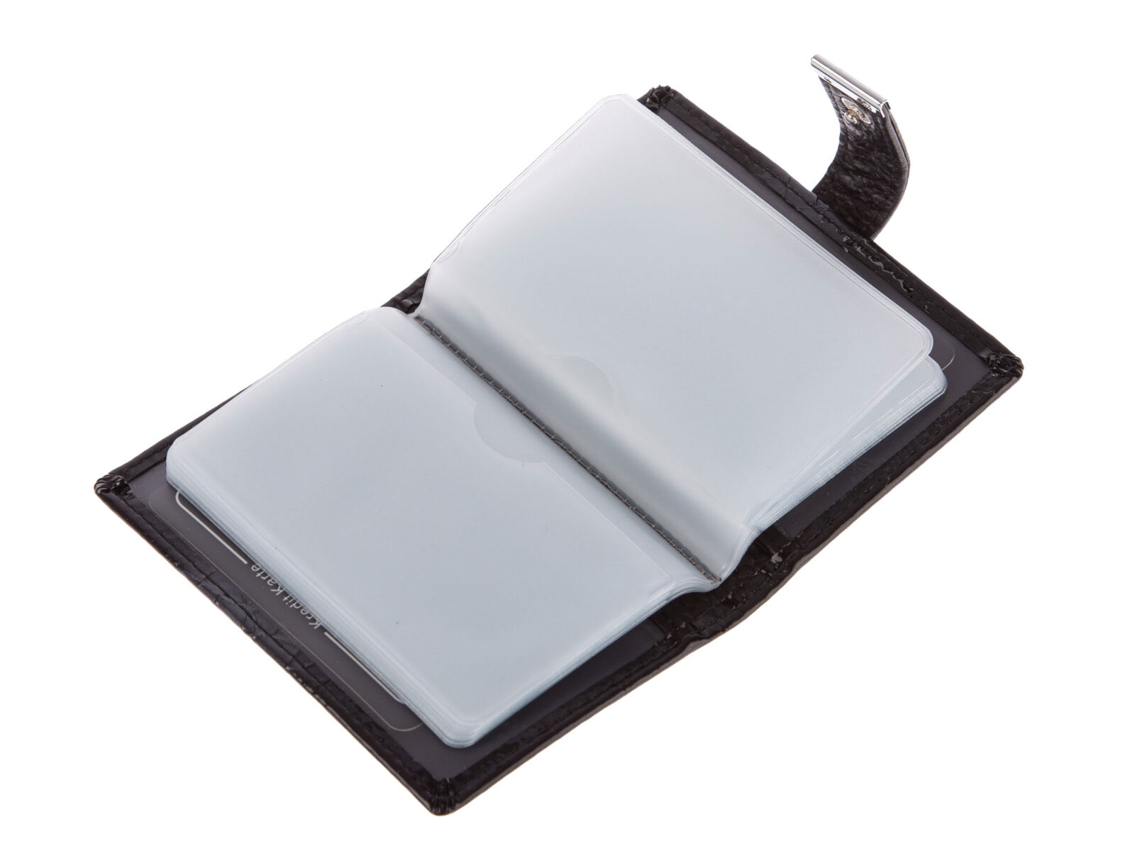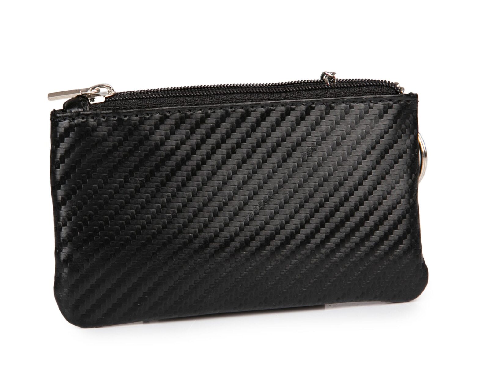 Etui Na Karty Damskie Lakierowane Czarne z tłoczoną marmurkową teksturą
