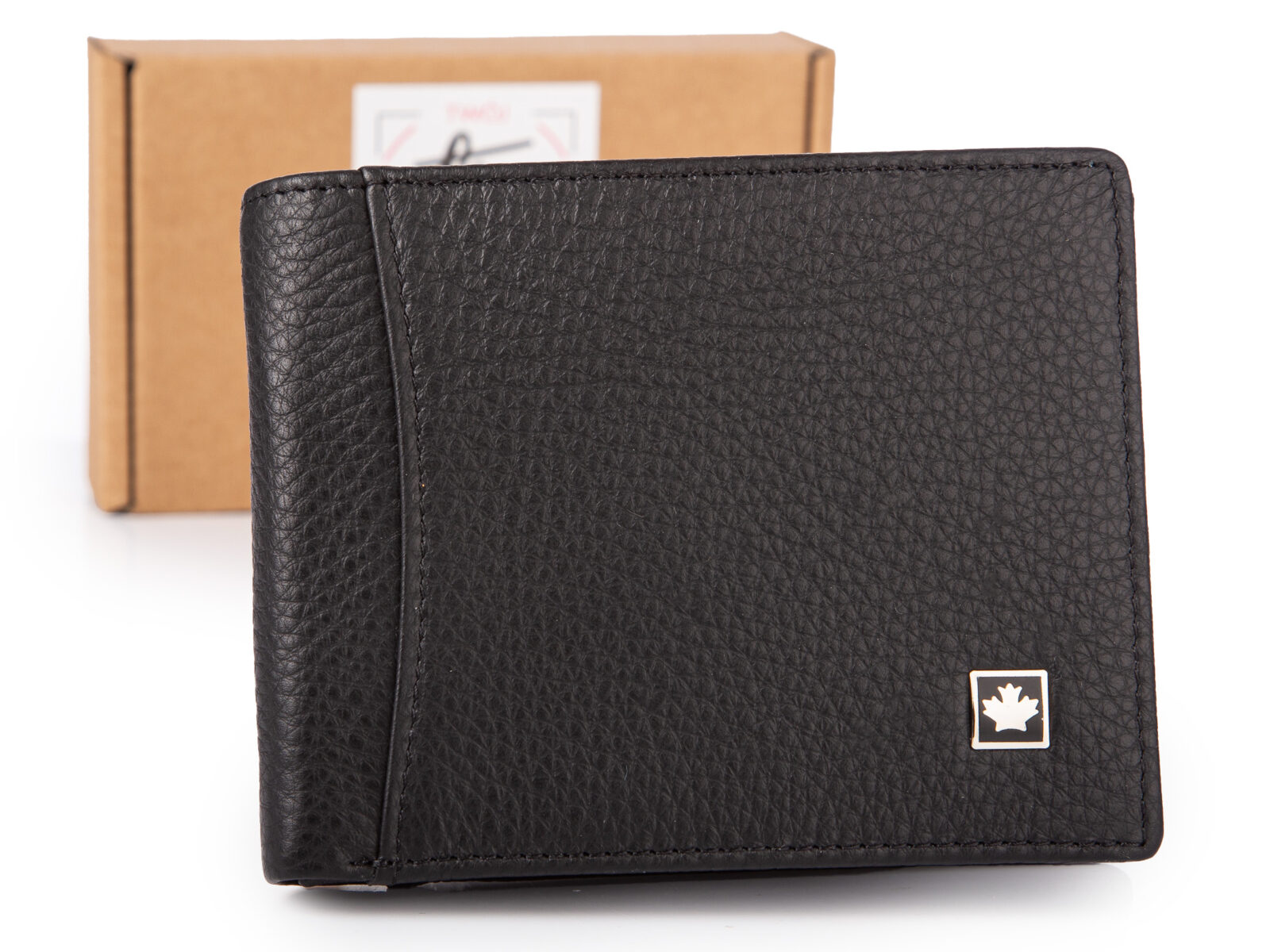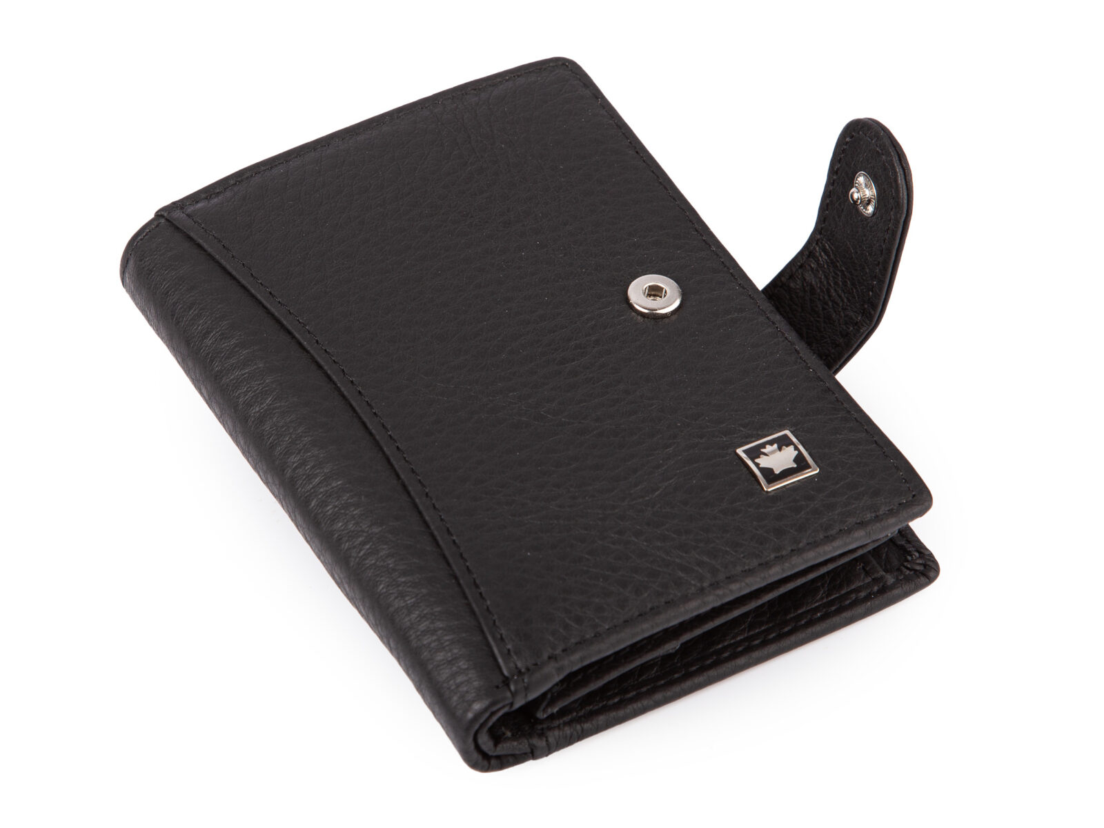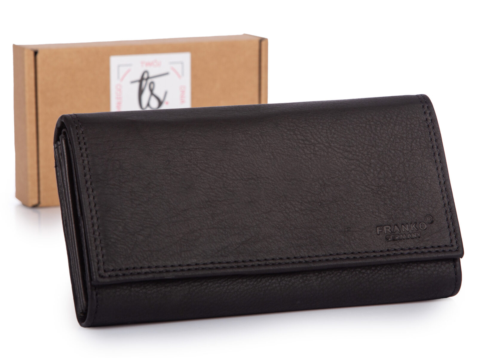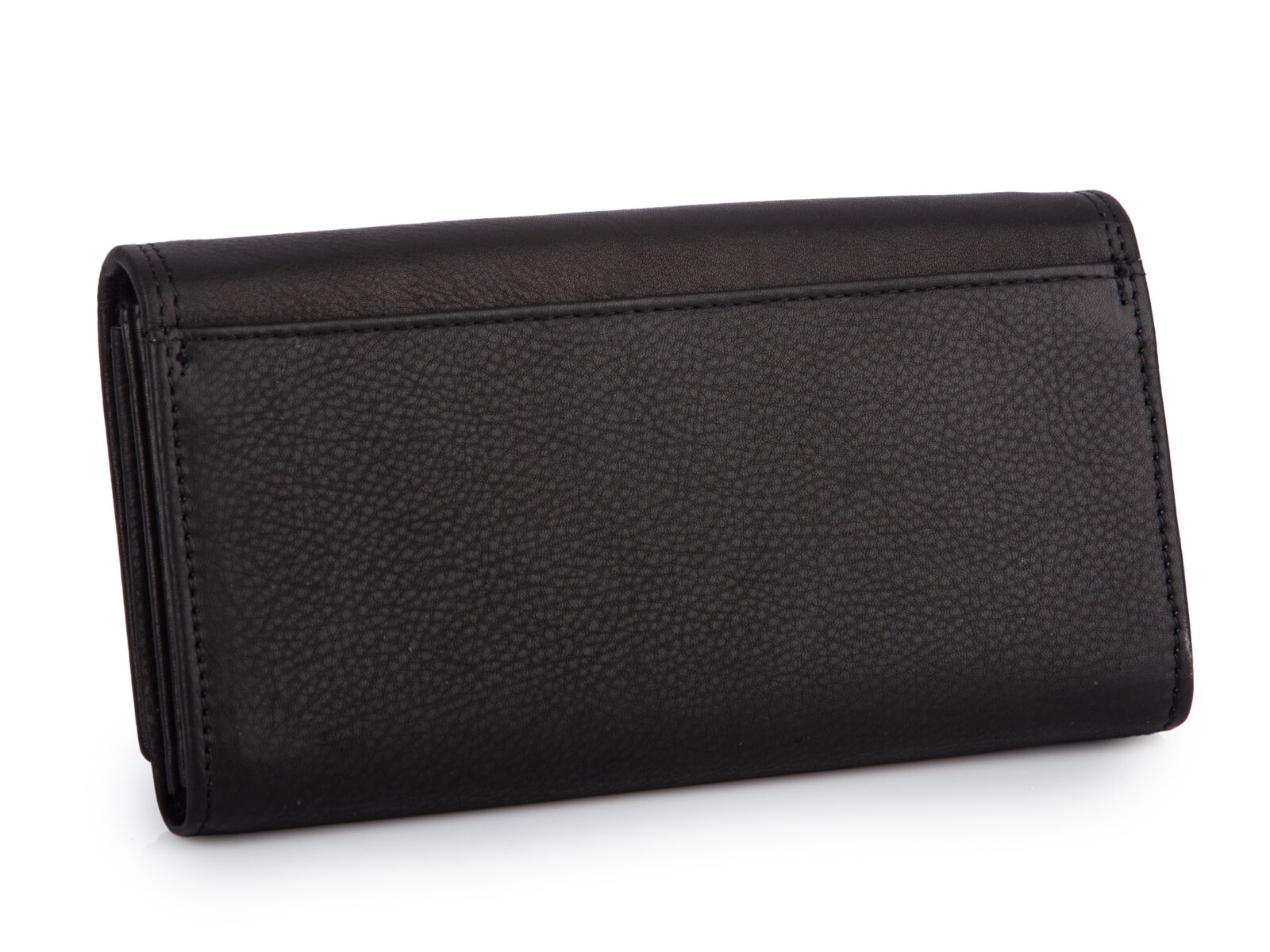 Czarny, pojemny, skórzany portfel damski poziomy Franko