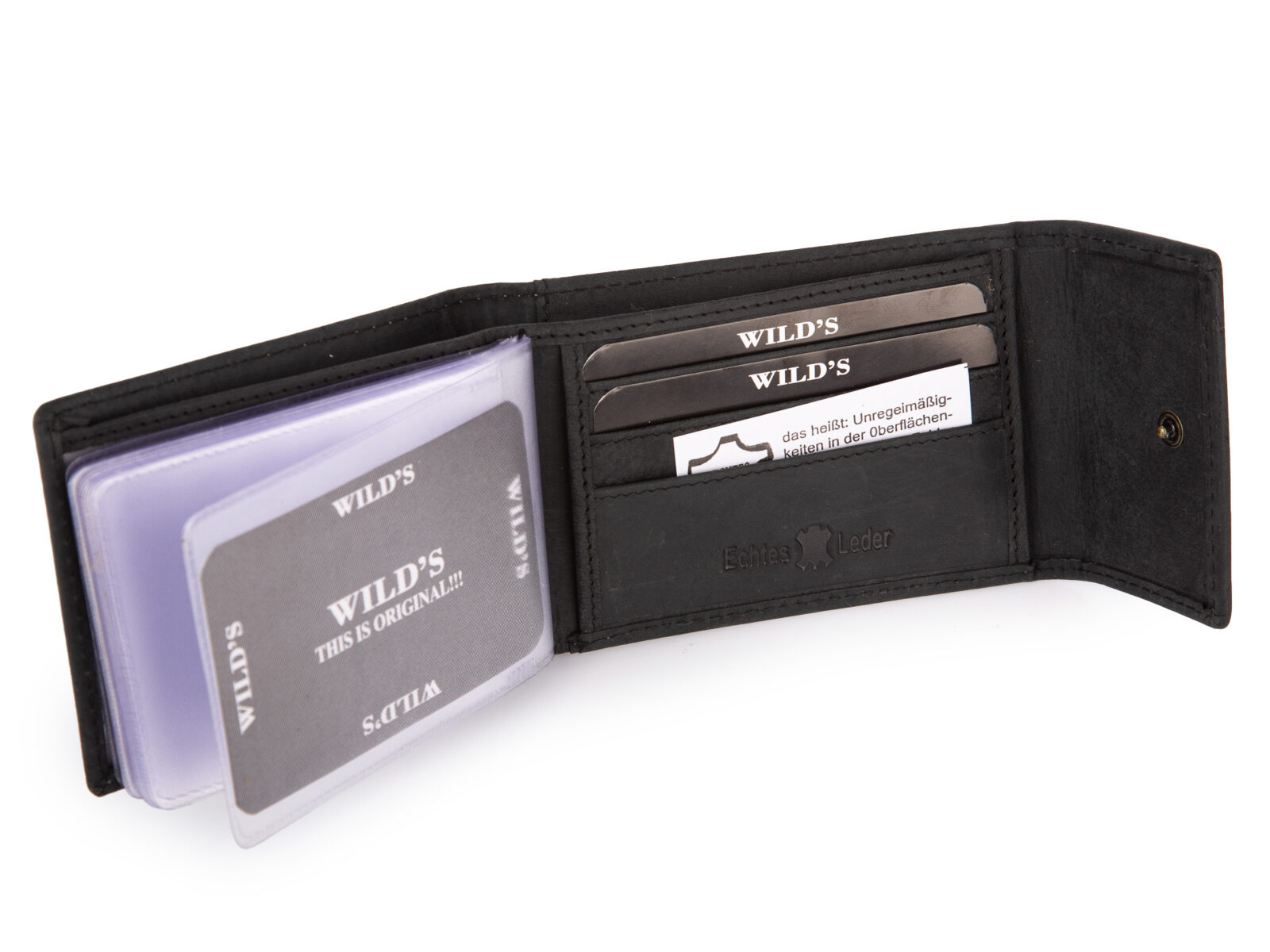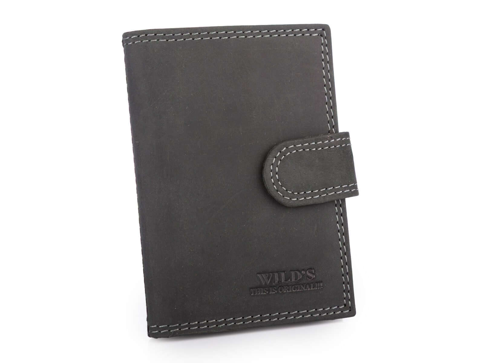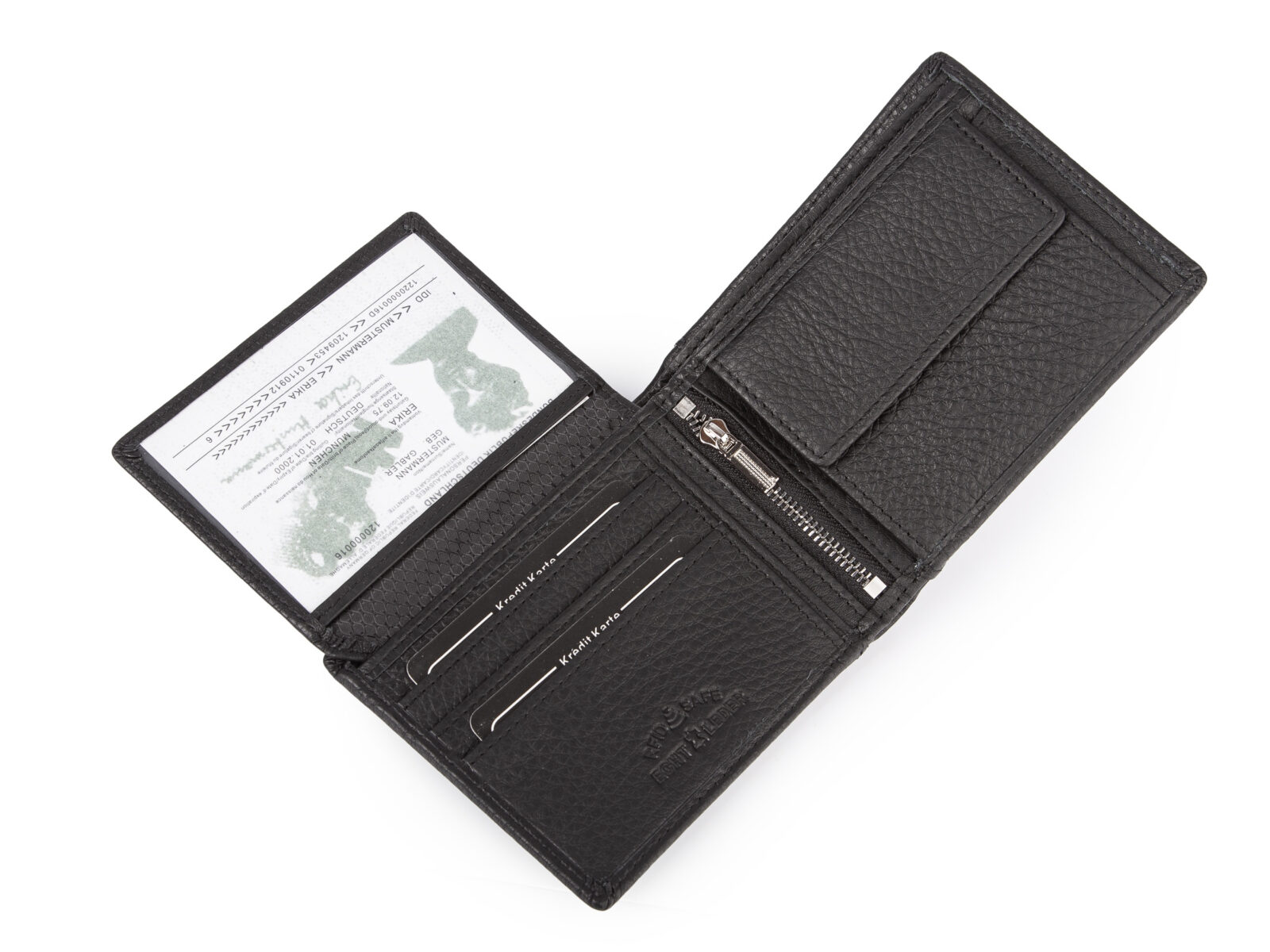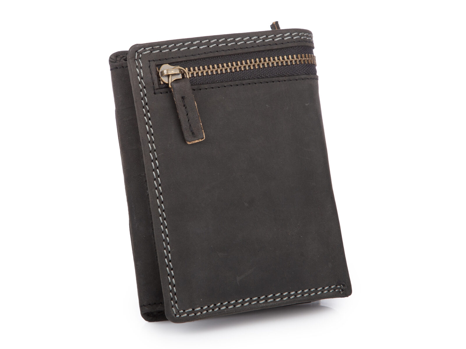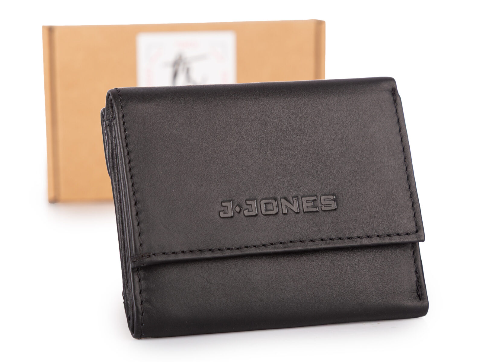Czarny, pojemny, skórzany portfel damski poziomy Franko