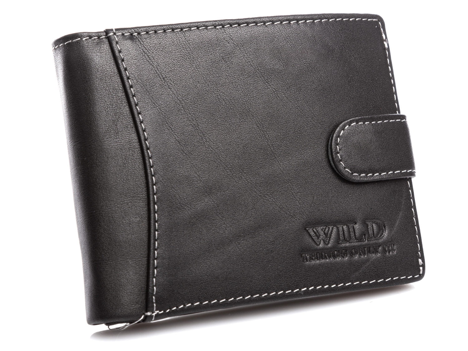 Skórzany portfel męski czarny zapinany na zatrzask RFID WILD