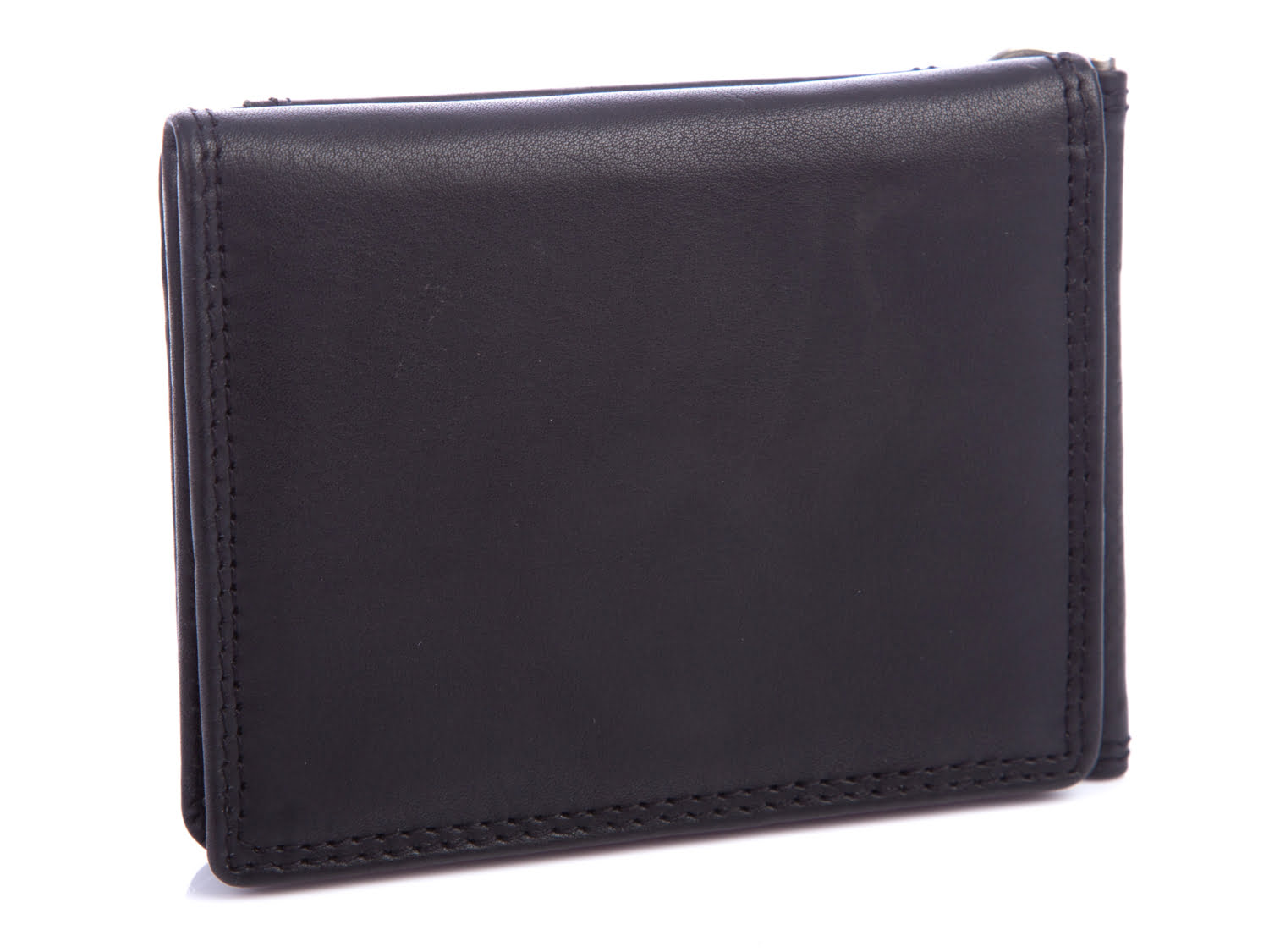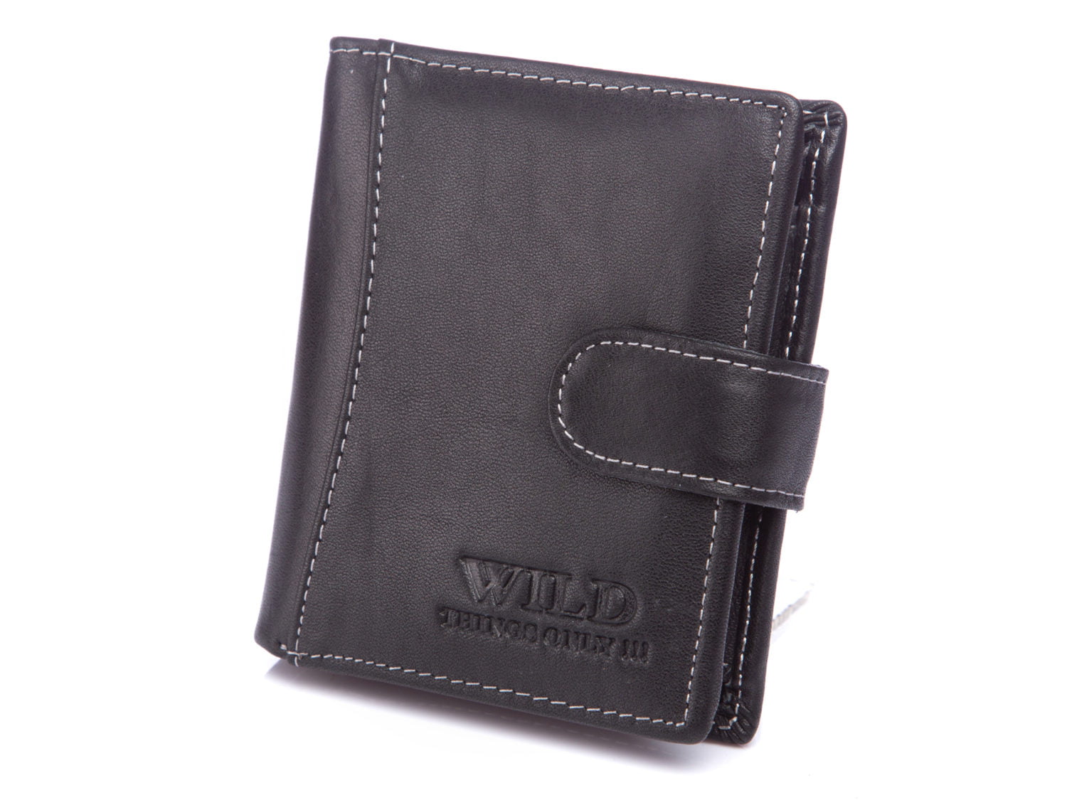 WILD Skórzany portfel męski zapinany na zatrzask nieduży czarny