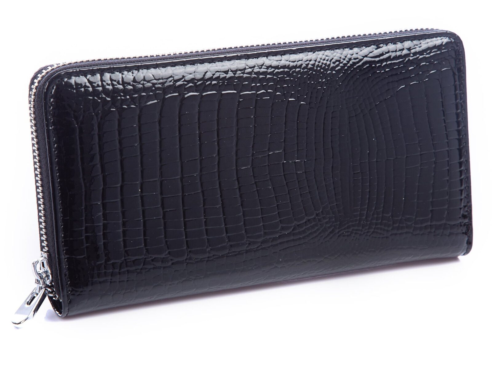 Czarny lakierowany portfel kopertowy damski Jennifer Jones