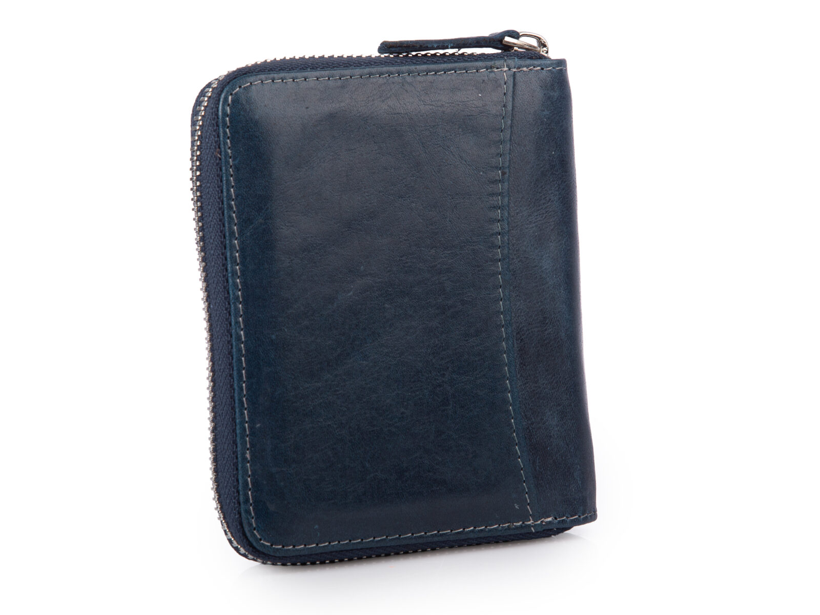 Pionowy portfel męski zapinany na zamek granatowy WILD