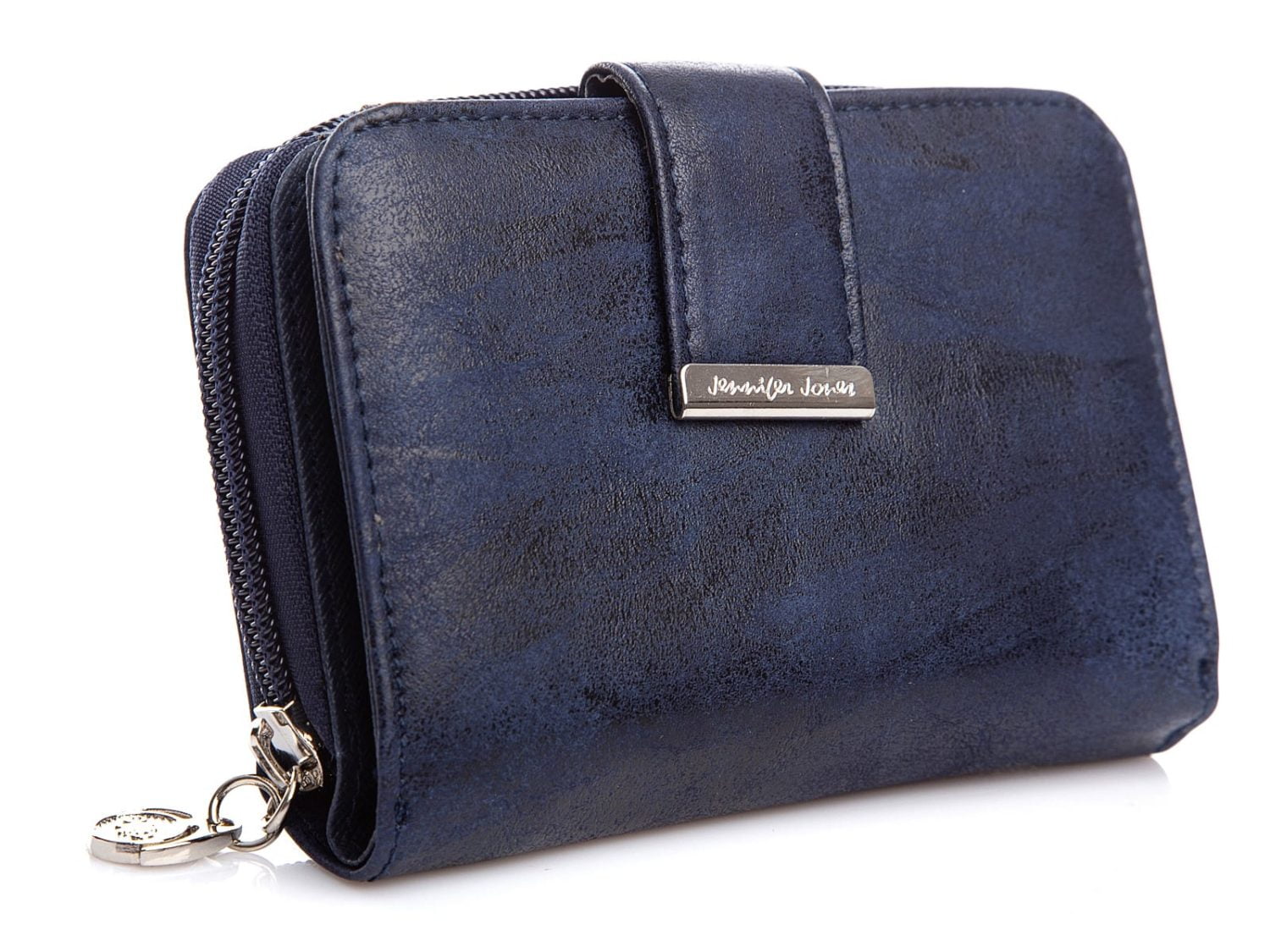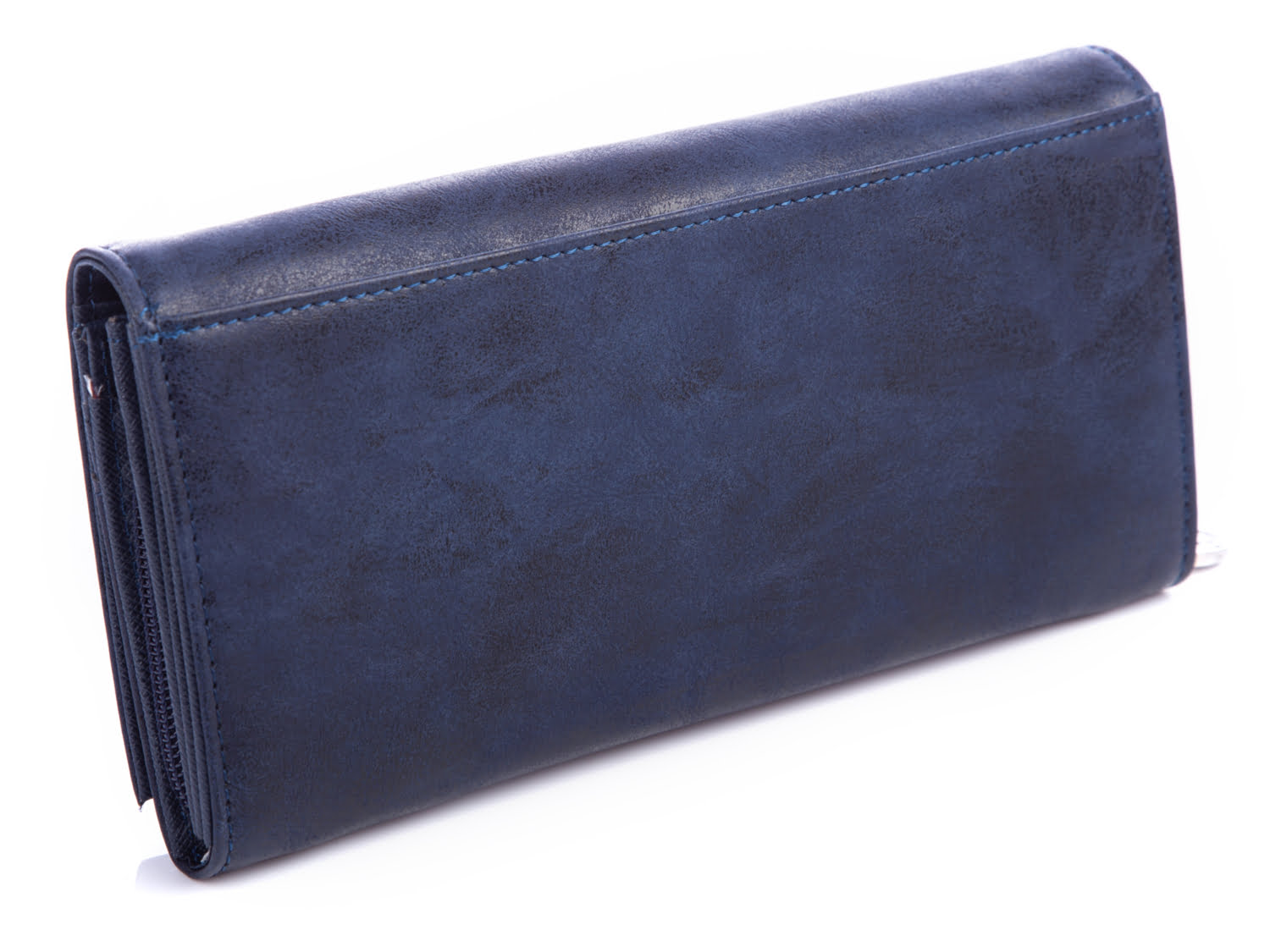 Gładki granatowy skórzany portfel damski Money Maker RFID
