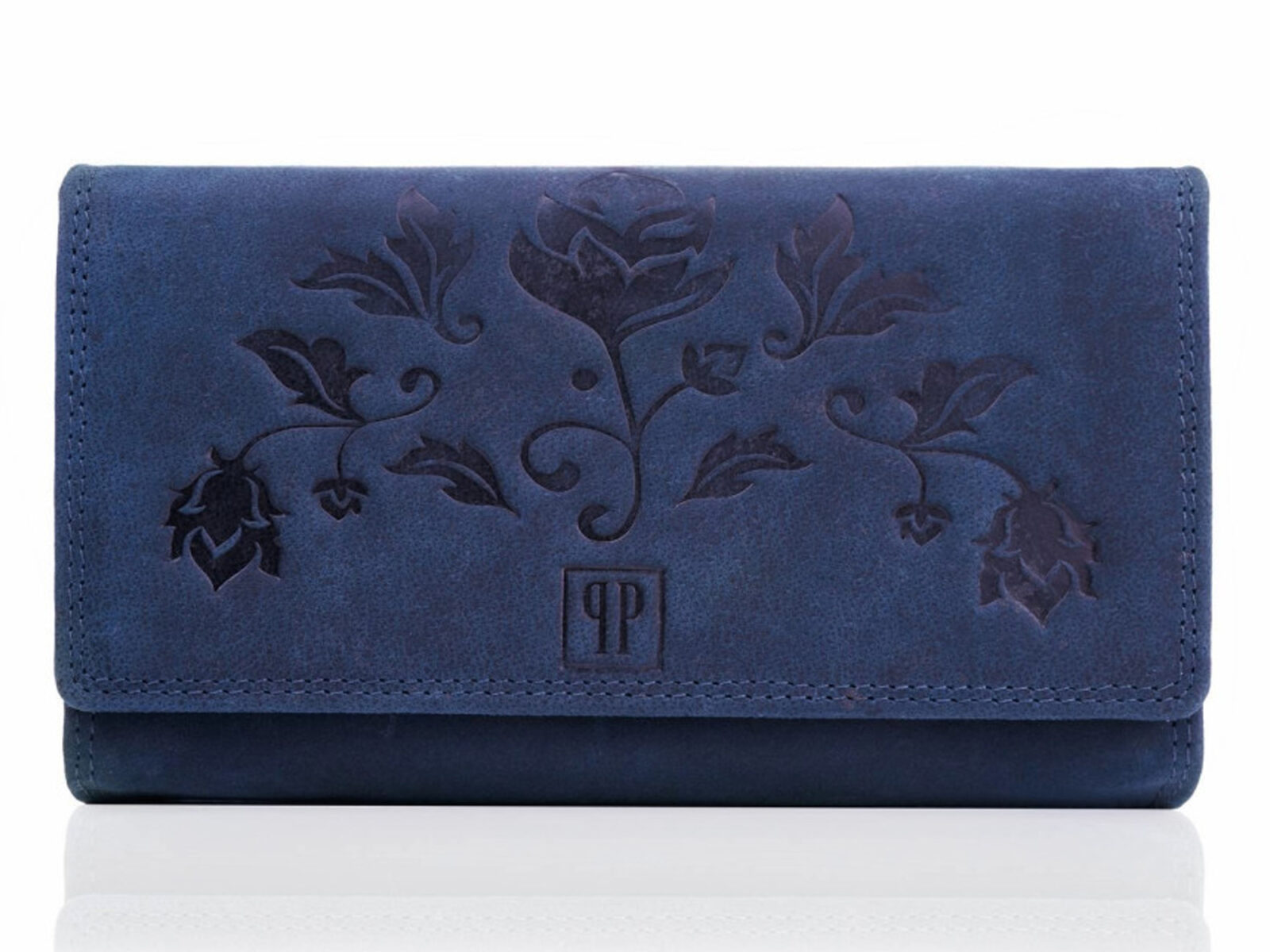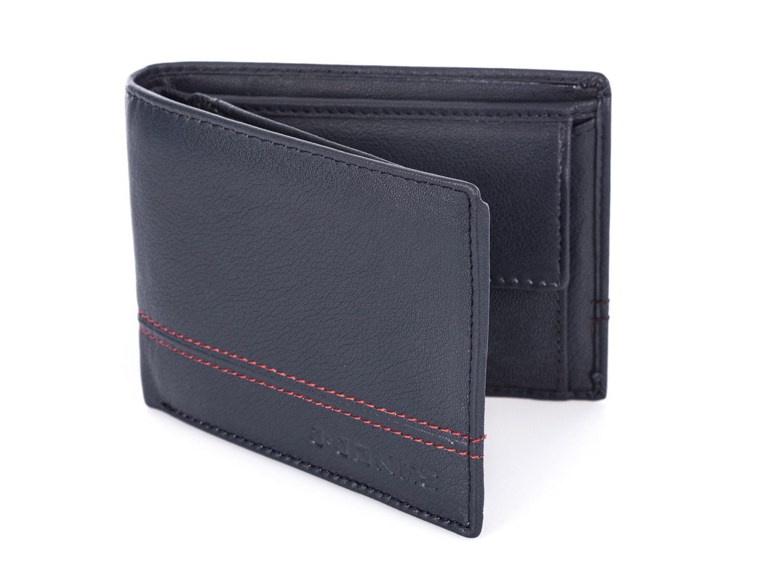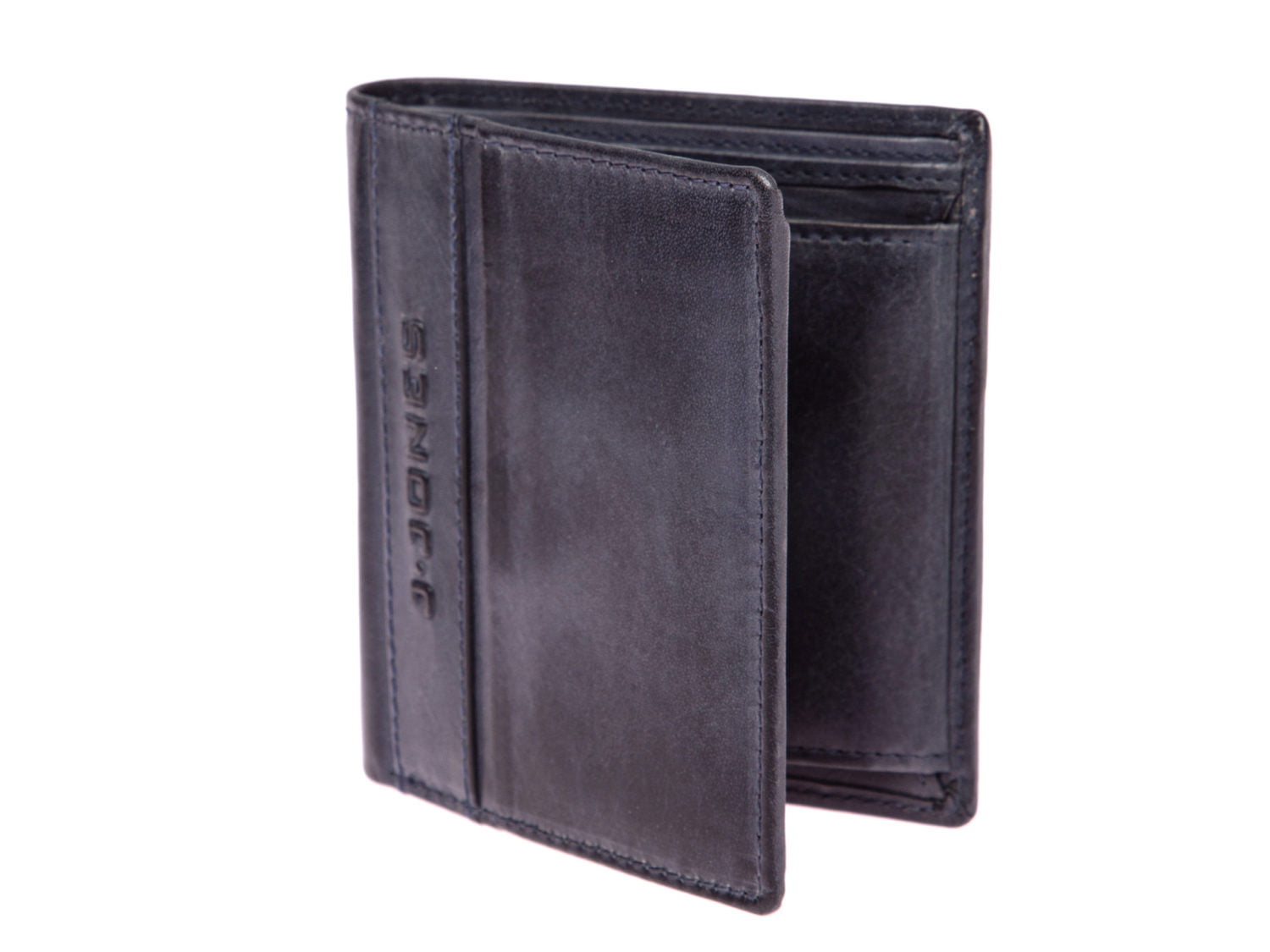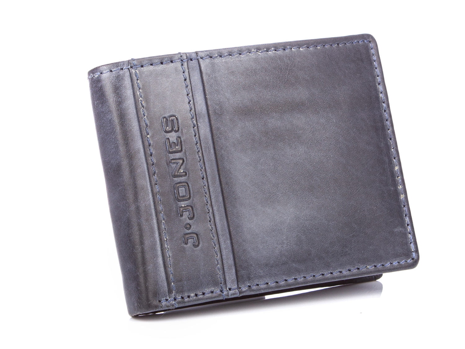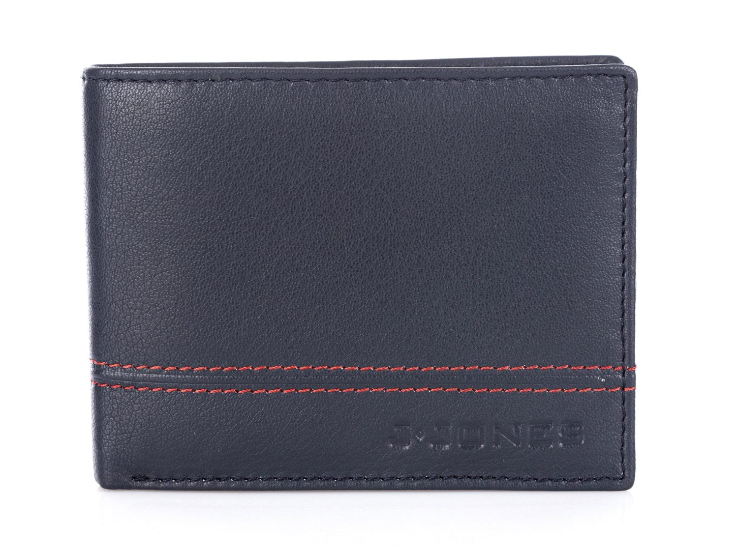 Poziomy portfel męski skórzany J Jones trifold RFID granatowo-czerwony