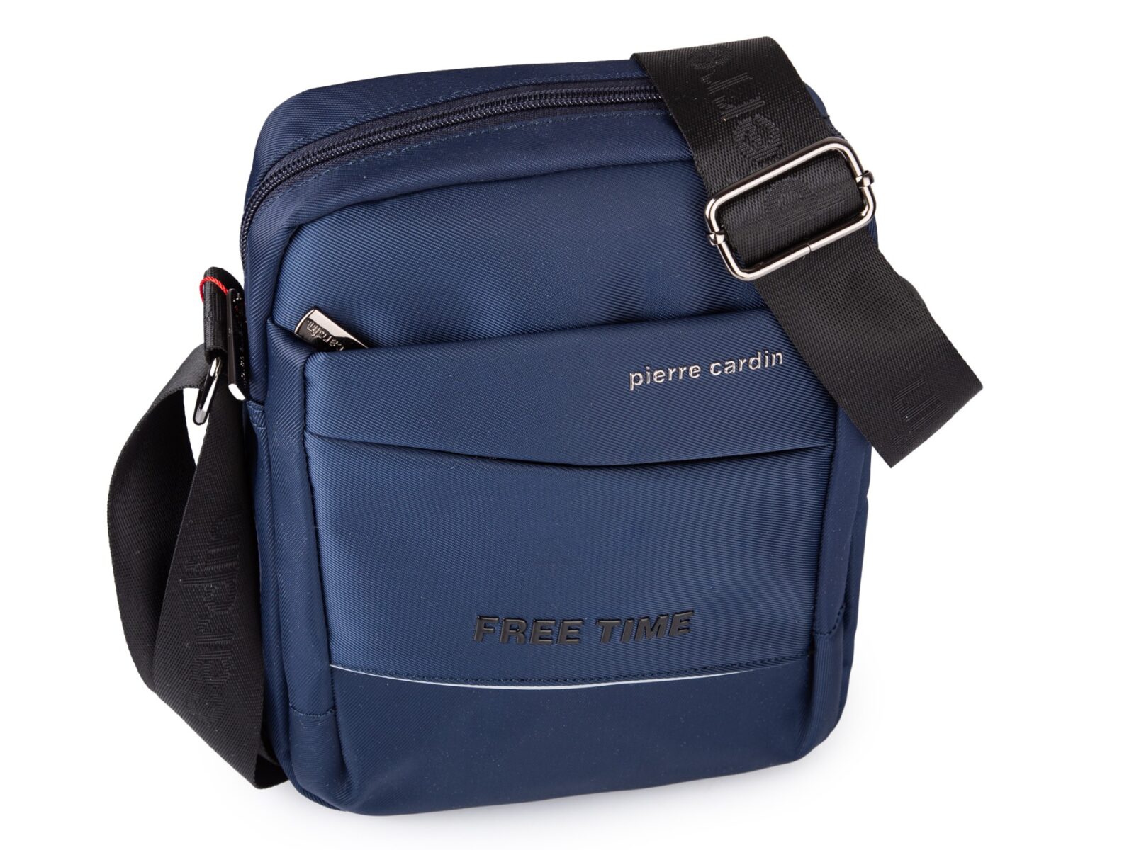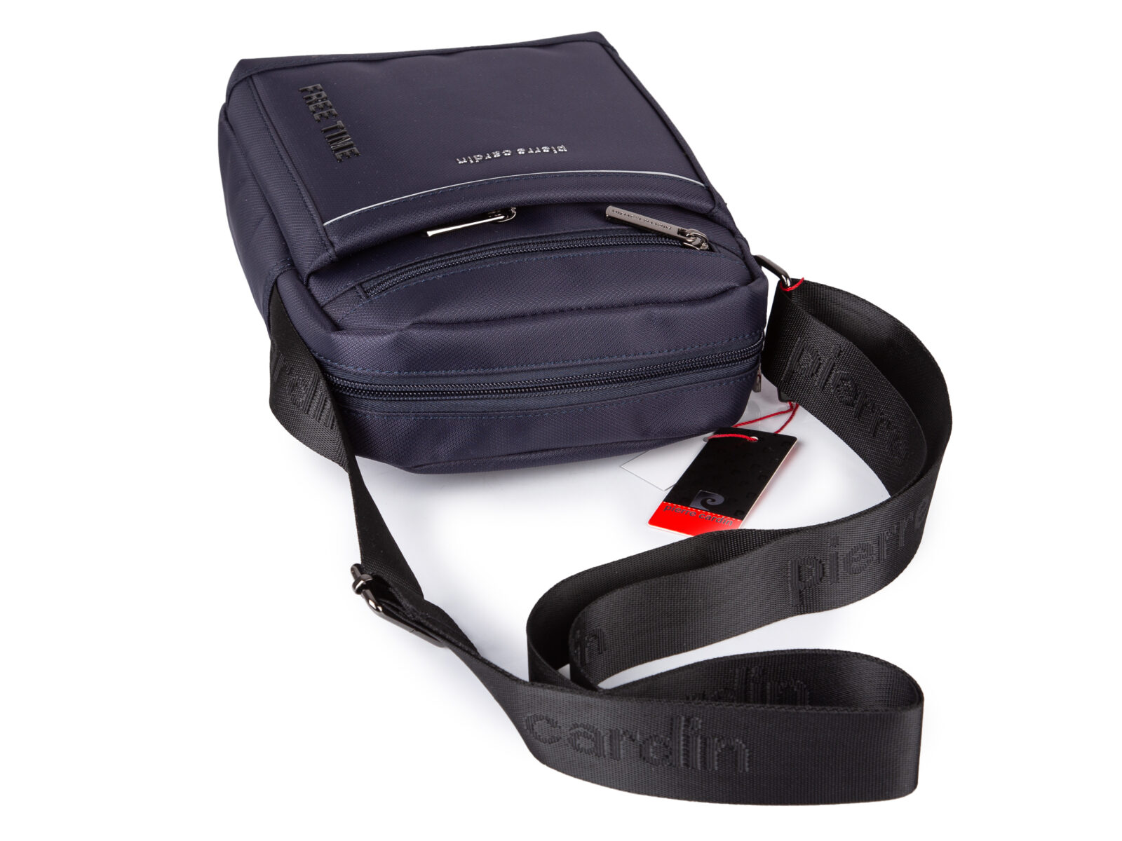 Saszetka męska na co dzień z paskiem na ramię i mocowaniem do paska niebieska