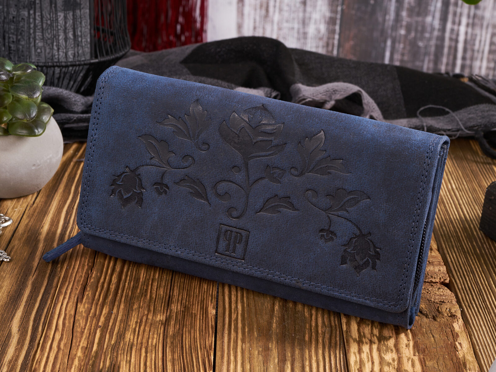 Granatowy portfel męski zapinany na zamek, poziomy WILD