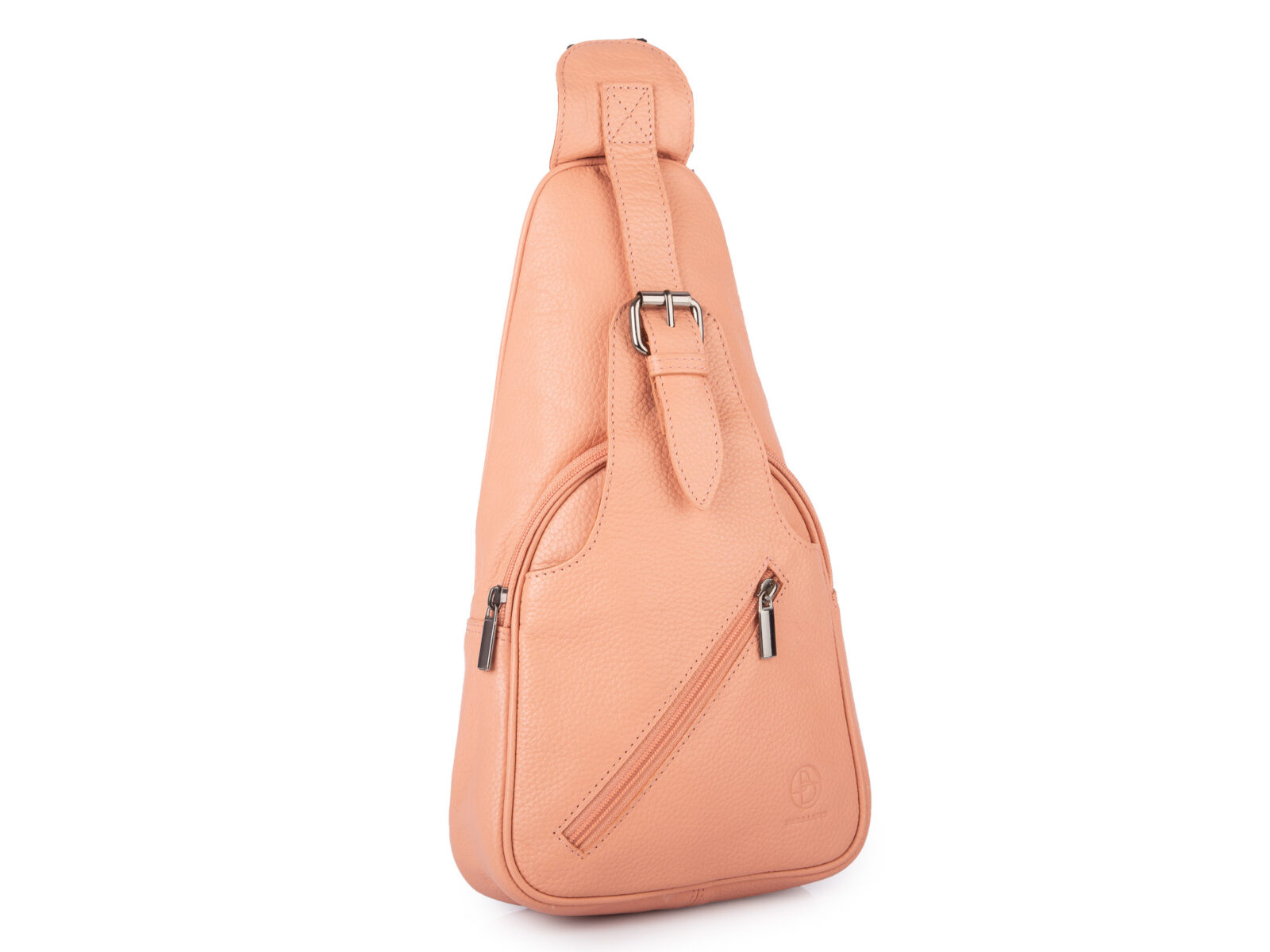 Skórzany plecak damski miejski na jedno ramię elegancki brzoskwiniowy