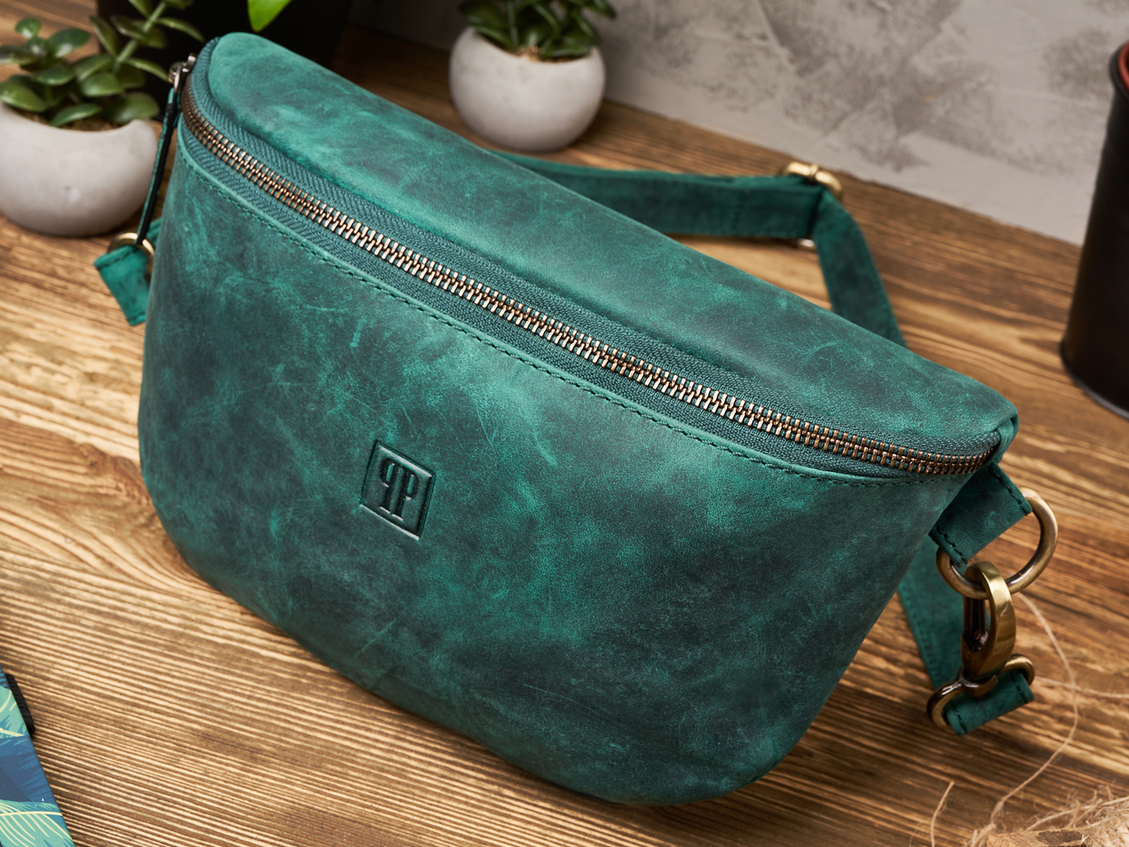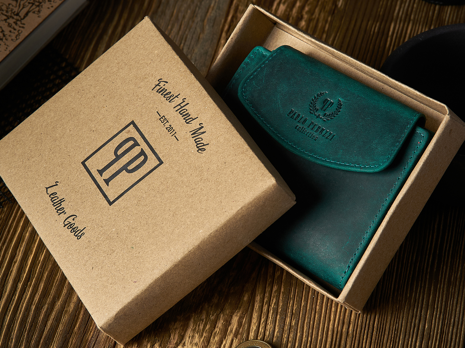 Saszetka skórzana nerka damska turkusowa vintage Paolo Peruzzi