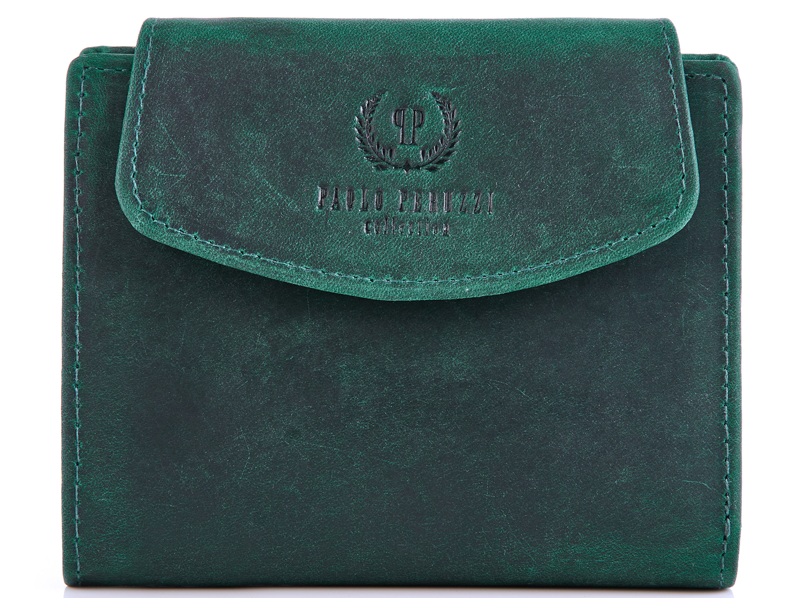 Portfel damski średni z grubej skóry naturalnej vintage RFID turkusowy Paolo Peruzzi