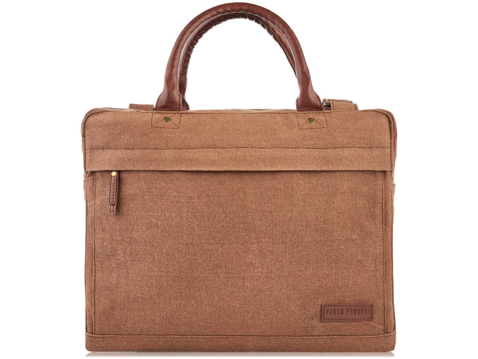 Duża, elegancka, materiałowa torba męska do pracy w kolorze brązowym A4 na laptopa