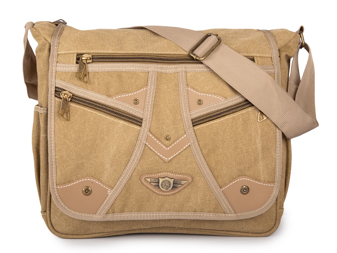 Pojemna, materiałowa torba męska na ramię w stylu vintage w kolorze khaki ORMI