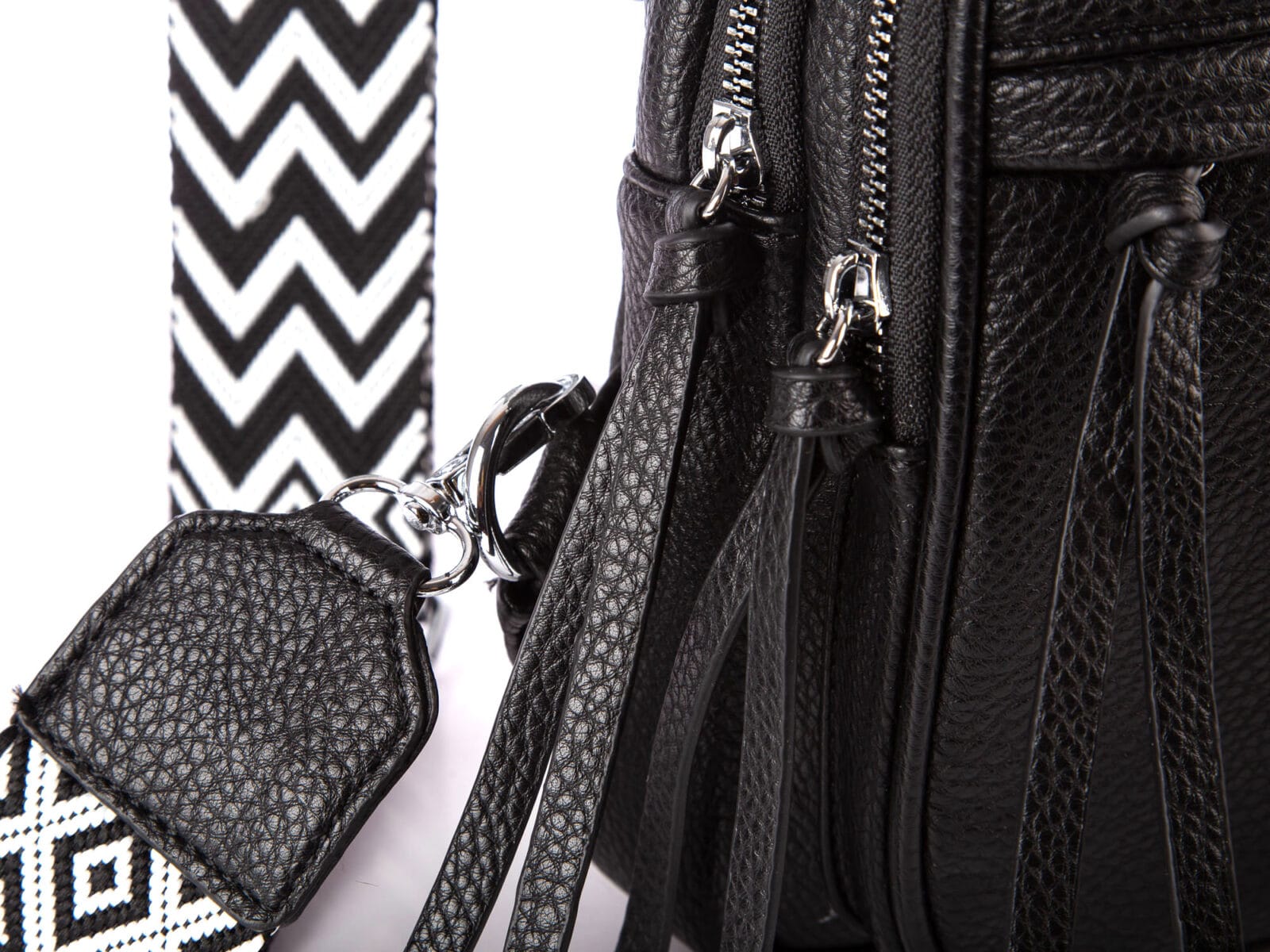 Czarny plecak damski na jadno ramię 2-komorowy z saszetką