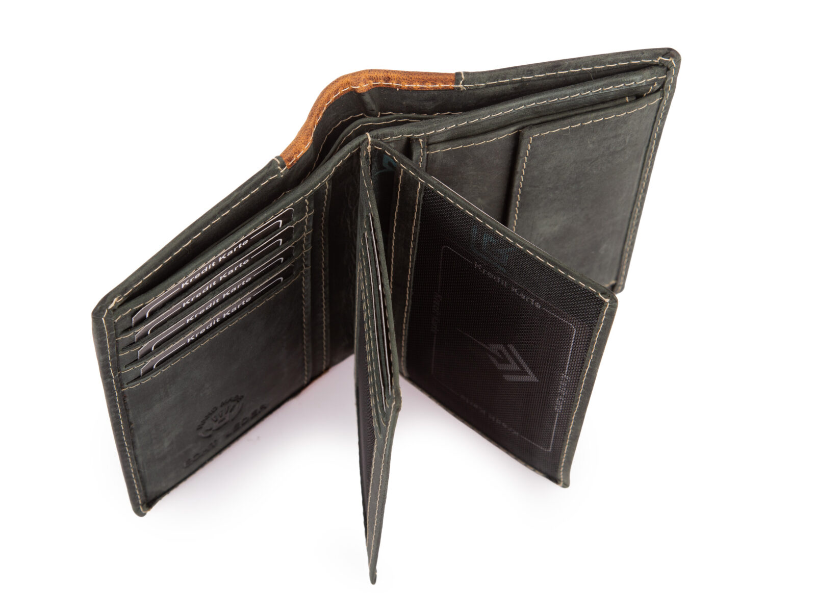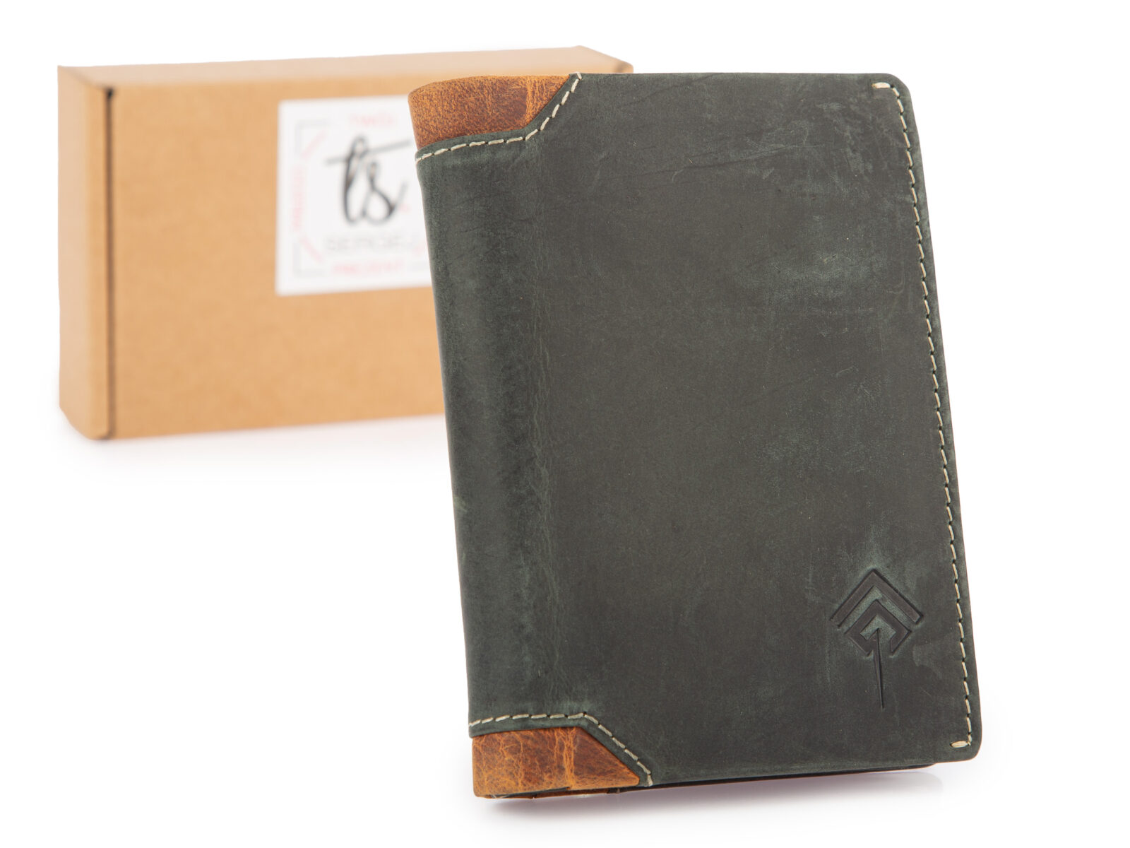 Pionowy portfel męski skórzany szyty ręcznie zielony Ekavale z ochroną RFID