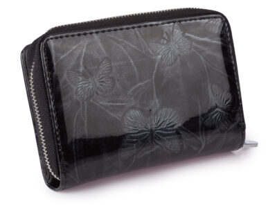 Pierwotna cena wynosiła: 199,99 zł.118,99 złAktualna cena wynosi: 118,99 zł. BruttoPortfel damski czarny lakierowany z wzorkiem w motylki RFID Gregorio