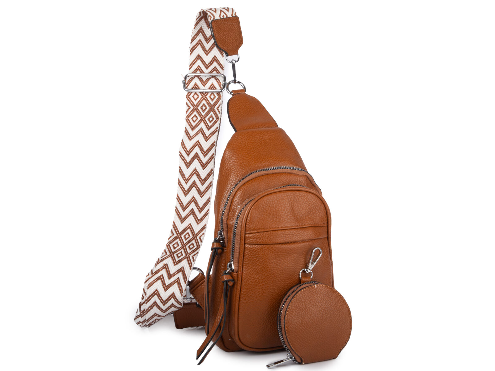 Brązowym (koniakowy) plecak damski na jedno ramię miejski elegancki