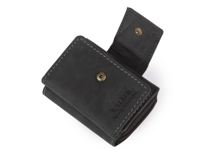 Mały czarny portfel męski Wild’s zapinany na zamek ze skóry