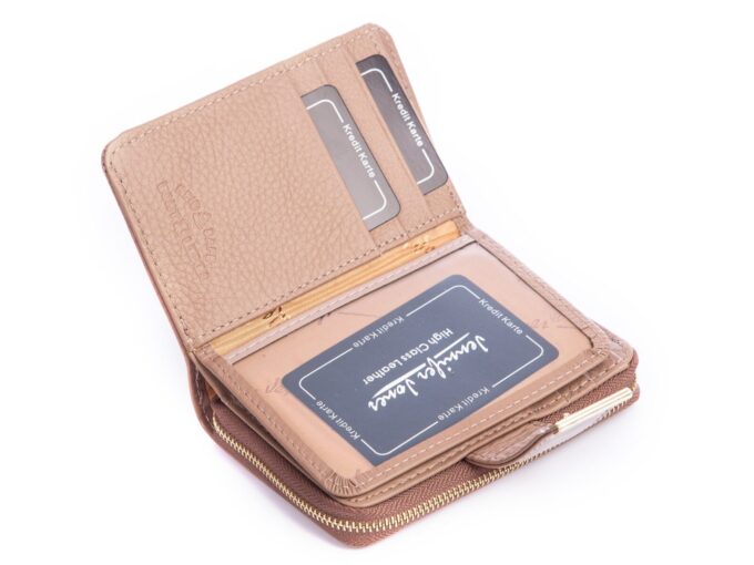 - Portfel wyposażono w dwie przegrody na bilon, zamykane na zamek błyskawiczny,