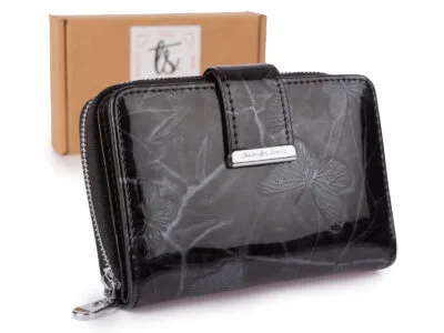 Czarny portfel damski lakierowany średni Jennifer Jones