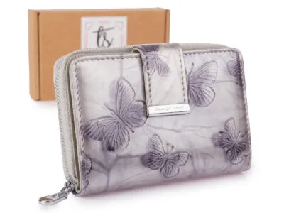 Średni portfel damski Jennifer Jones w kolorze srebrnym z motylkami RFID