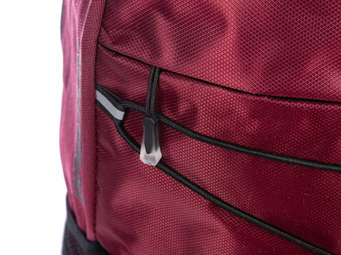 - Z przodu plecaka znajdują się elastyczne gumki do przymocowania dodatkowych akcesoriów.