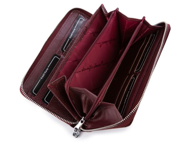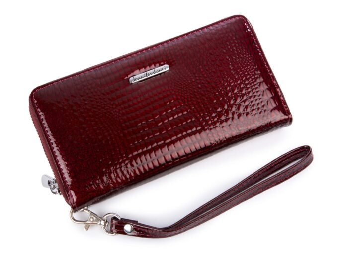 Bordowy portfel damski kopertowy piórnik lakierowany na zamek Jennifer Jones
