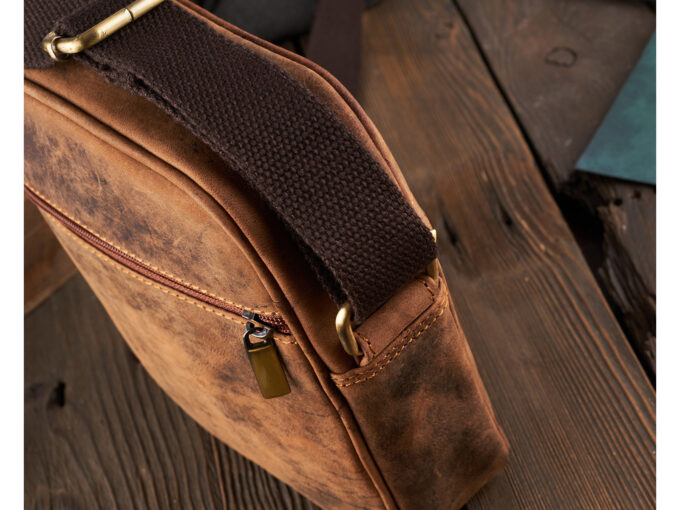 Wygodna brązowa torba męska na ramię skórzana w stylu vintage Jorey