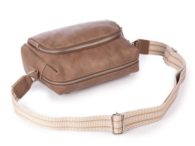 - Z przodu torebki ulokowano podręczną kieszonkę na dodatkowe akcesoria, zapinaną na metalowy suwak.