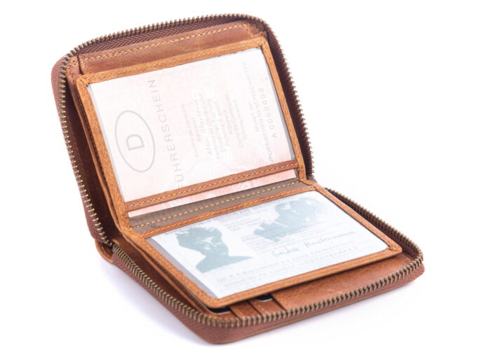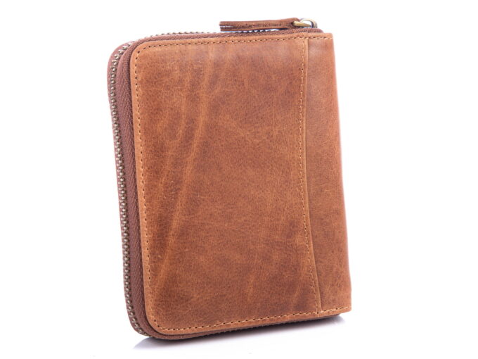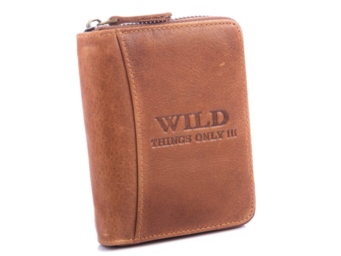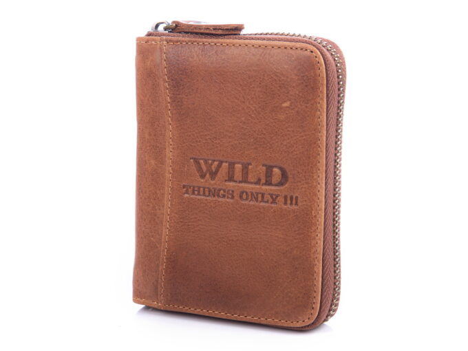 Skórzany portfel męski zapinany dookoła na zamek błyskawiczny Wild’s brązowy
