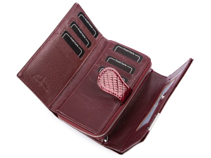- Portfel w bardzo eleganckim intensywnym czereśniowo-czerwony kolorze.