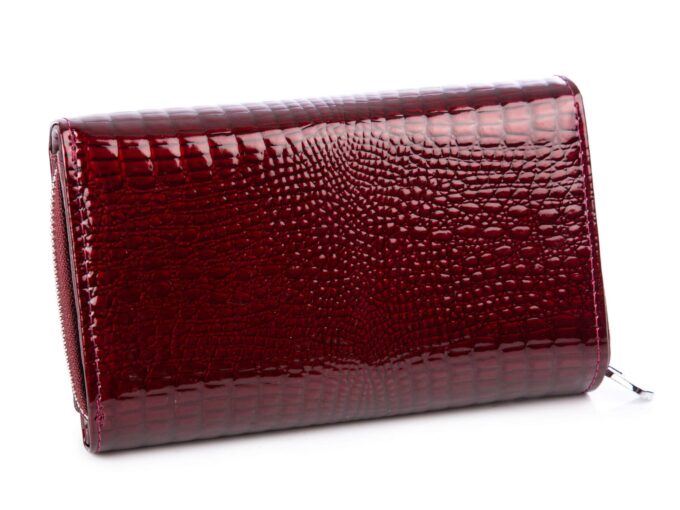 - Duży, ciemno-czerwony, bordowy, lakierowany portfel damski